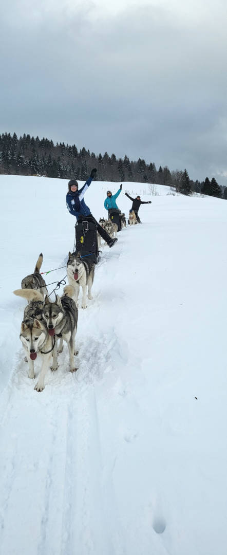 Une fois la présentation générale de l’activité, des chiens et du matériel (briefing), les élèves vont pouvoir piloter un attelage de 2 à 4 chiens (variation du nombre de chien en fonction du poids/taille/âge des participants) aux commandes de leur traineau.