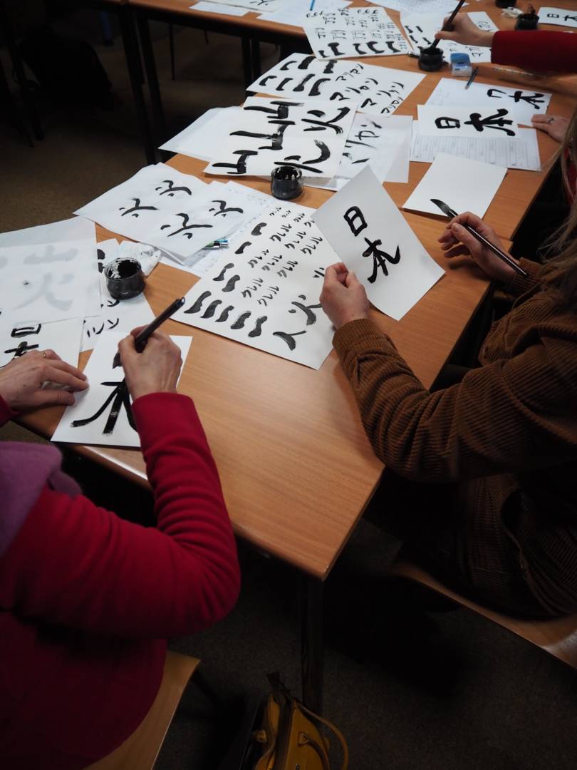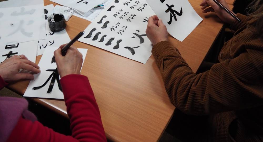Découvrez la calligraphie japonaise avec Kanako Mitsuzumie et Yann Berne : écrivez votre prénom en katakana, explorez pinceau, encre et papier, et tracez un kanji sur papier d’art. Atelier accessible à tous, matériel fourni.
