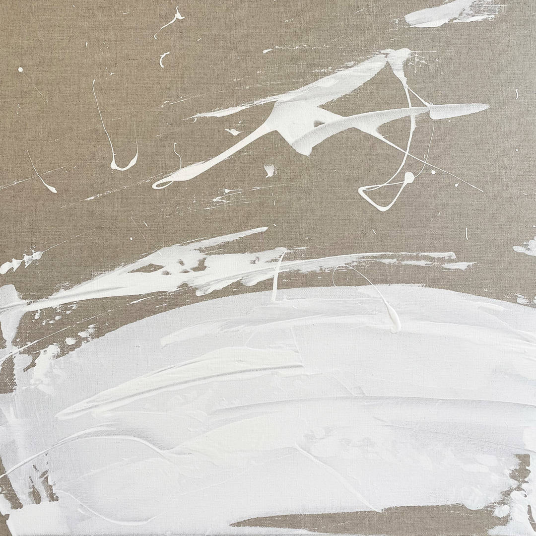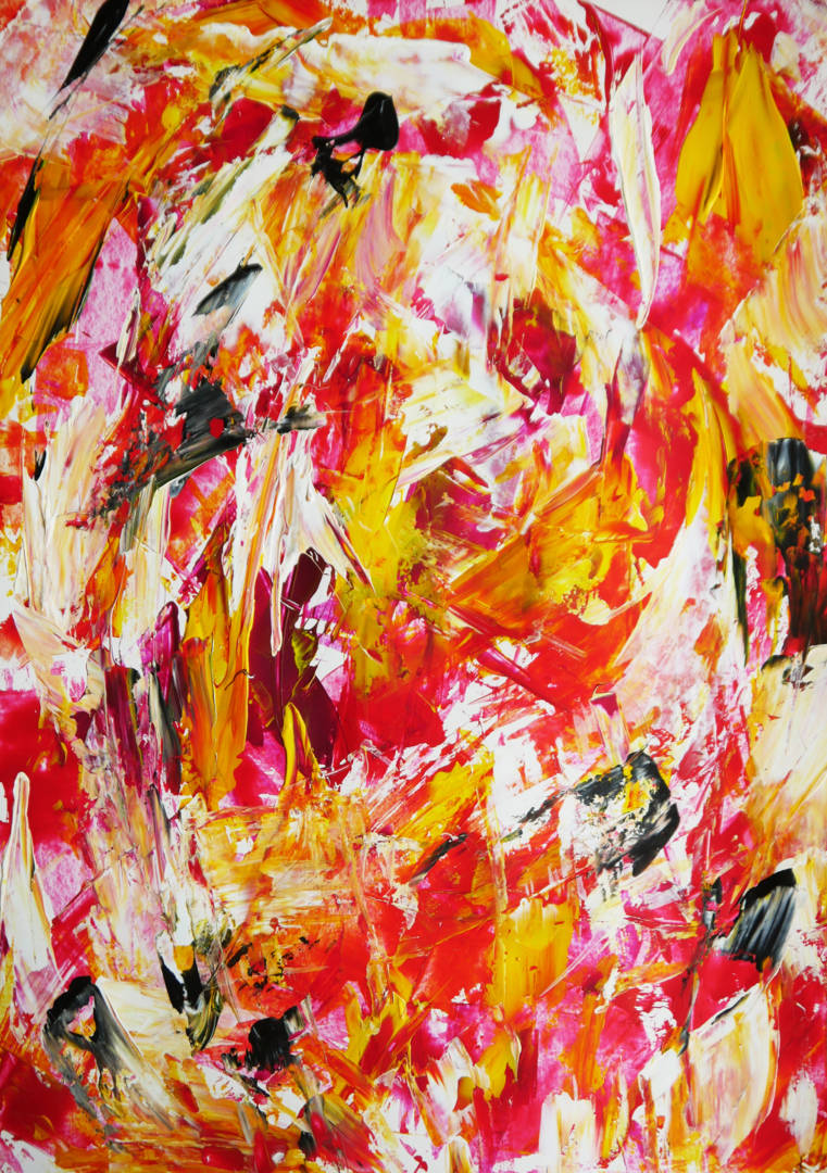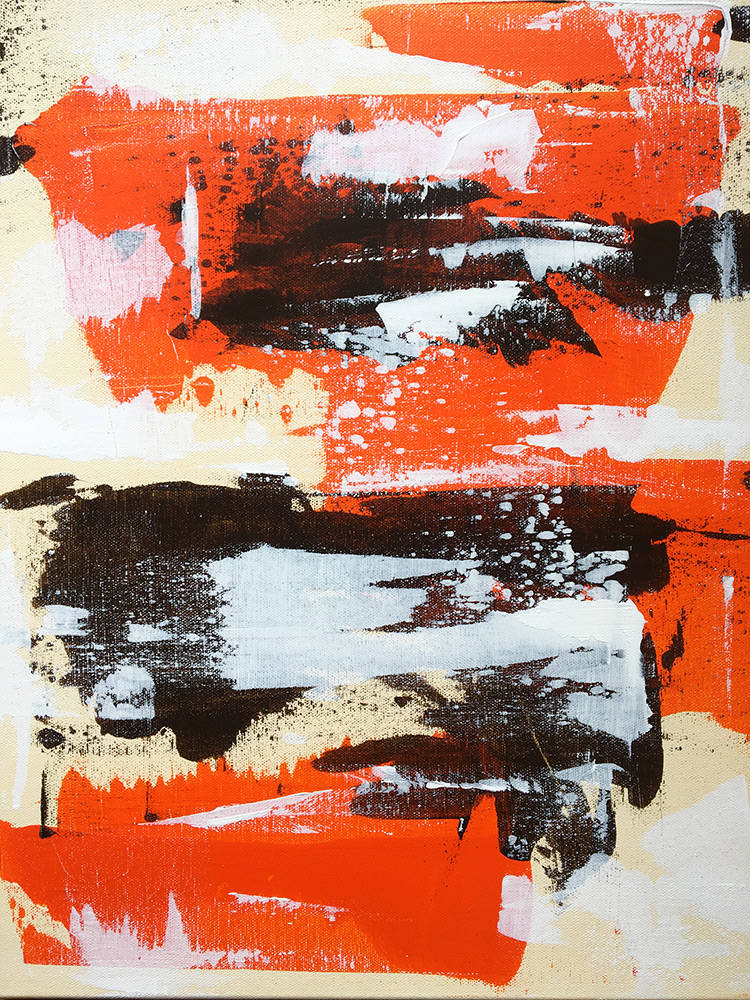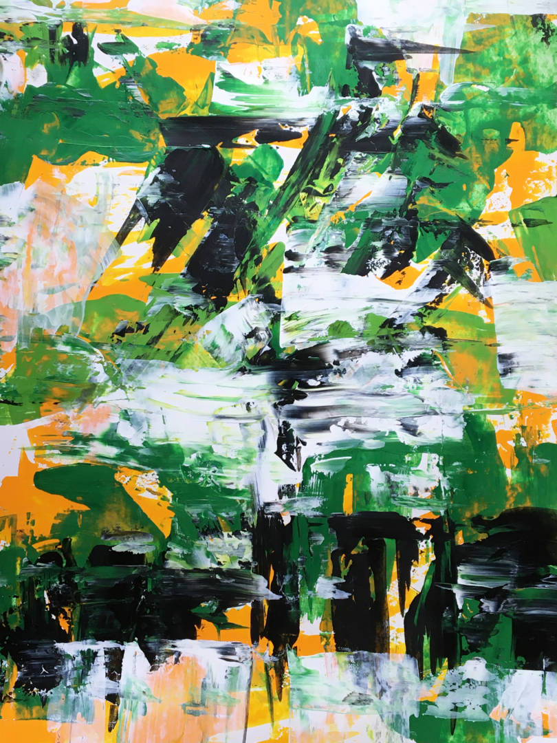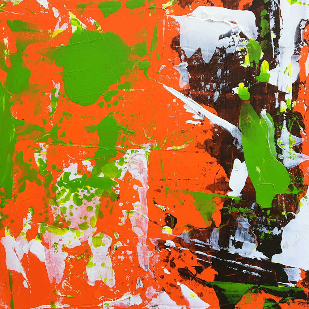 Transcendant les périodes, son travail crée un pont entre l’Abstraction Lyrique et le Street Art. Les titres évoquent le mouvement, quelque chose de libre où la vie pulse : Crushed Clouds (nuages écrasés), Wild orange (orange nature), Under pressure (sous pression) en sont quelques exemples. Artiste prolifique, il crée vite, comme pris d’un sentiment d’urgence. »