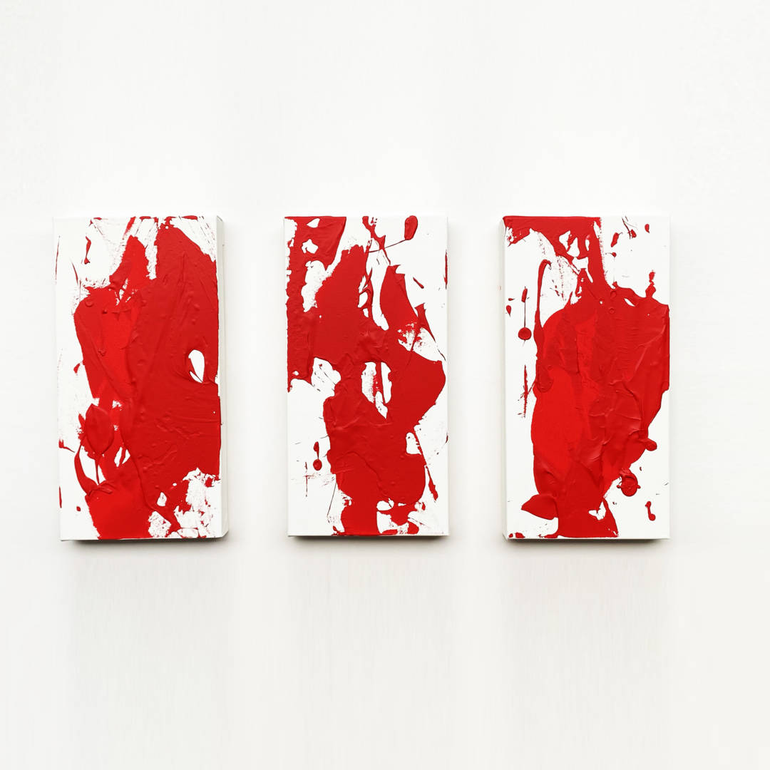 couleurs, en exemplaires uniques ou en séries. L’artiste travaille la spontanéité et la profondeur du geste, évoquant l’univers du textile dont il vient et cherche à se détacher, ou encore l’art numérique.