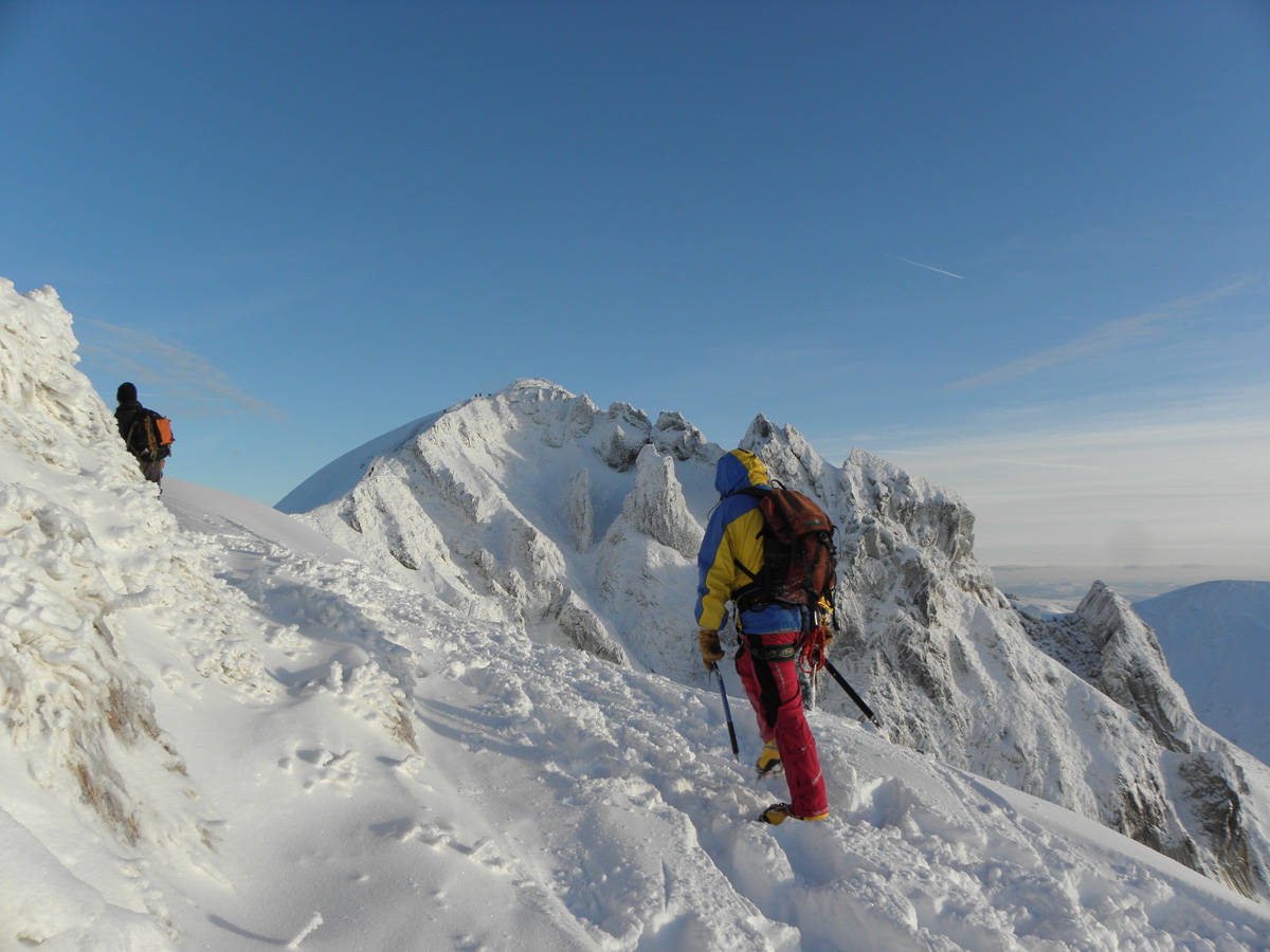 En hiver : alpinisme, cascade de glace, ski de randonnée, nivologie, raquettes.