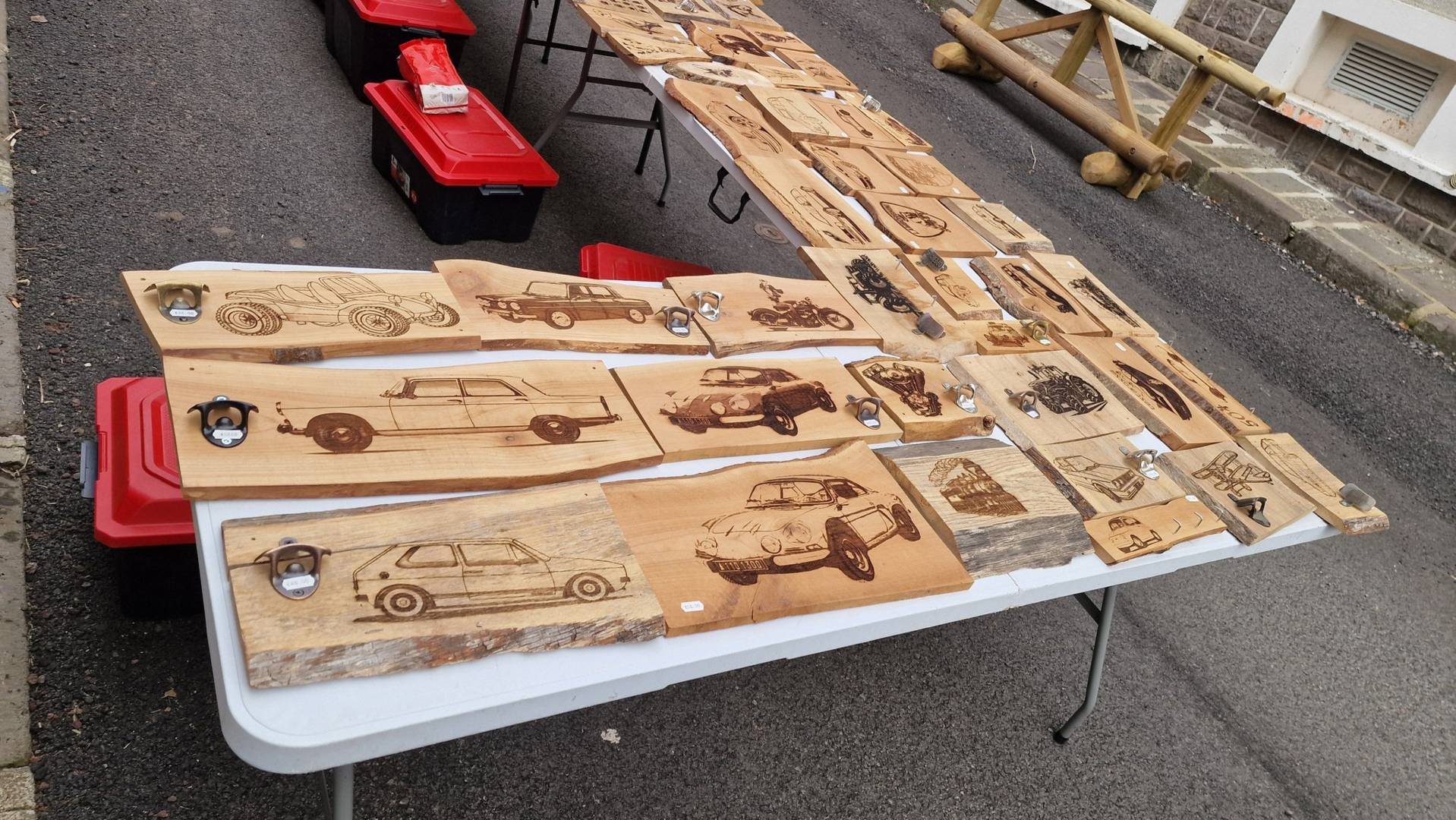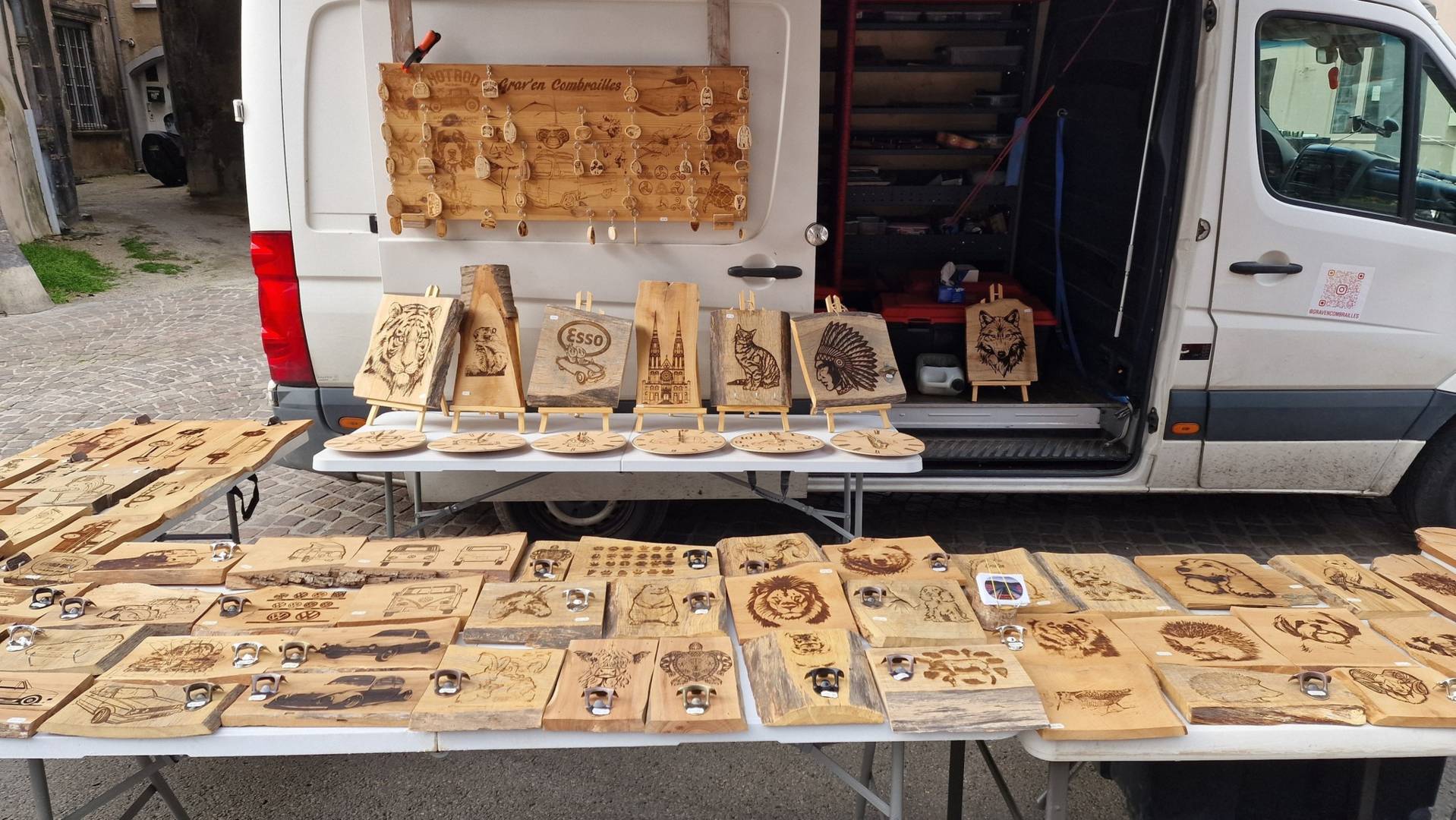 Gravures sur bois et ardoises. Je fabrique et vends des objets en bois avec des gravures (décapsuleur, accroches clés, porte clés, tableaux déco, dessous de plats…)Je grave aussi sur commande les dessins et photos de votre choix.