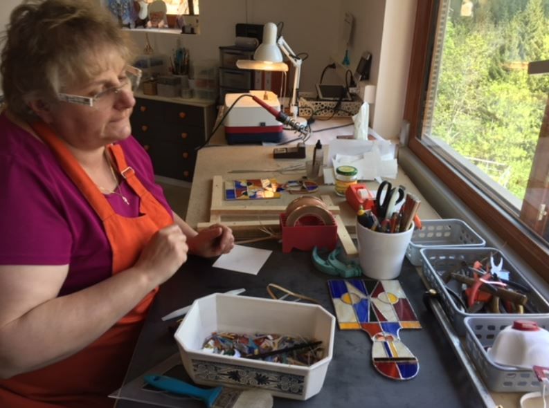 Mais le vitrail est aussi un art profane. La méthode ancestrale de montage au plomb est connue de tous mais dès 1870, Louis Comfort Tiffany s’intéresse au travail du verre et crée un nouveau mode de sertissage du verre. Plus simple à mettre en œuvre, cette méthode permet de créer de petits objets comme des bijoux. C’est cette méthode qui est utilisée à l’atelier situé au cœur du village d’Auzelles. En poussant la porte de l’atelier, vous découvrirez toutes les étapes de la création d’un objet du dessin du gabarit au sertissage à l’étain en passant par la coupe au diamant et le meulage, comment une plaque de verre devient lampe, décor de miroir, bijoux, objet de décoration, fenêtre, etc.