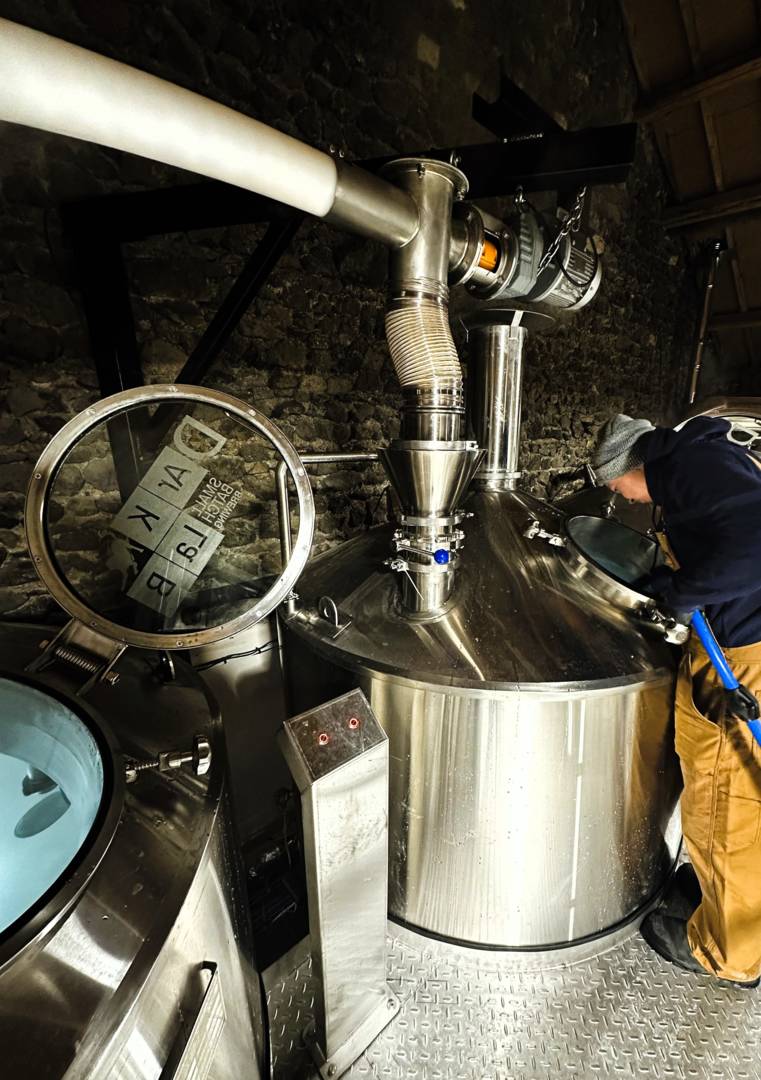 La salle à brasser de 20hL ainsi que 5 cuves de fermentation de 40hL chacune sont installées au premier étage de l’établissement.