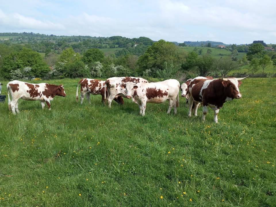 • 7 vaches de race Ferrandaise (cousine de la Salers). La Ferrandaise est une race mixte permettant de valoriser aussi bien le lait et la viande tout en étant en zone montagne, avec des prairies de qualité moyenne et des hiver froid. Nos vaches mettent bas de mars à avril et sont taries en décembre, pour passer l’hiver tranquille. Vous ne trouverez jamais nos produits en janvier et février !