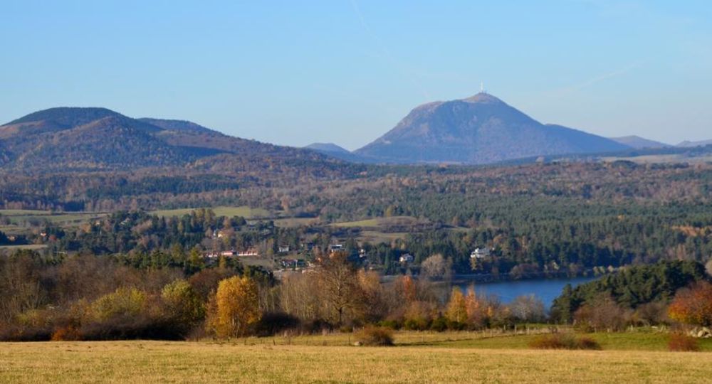 – Vue sur le lac et le puy de Dôme.