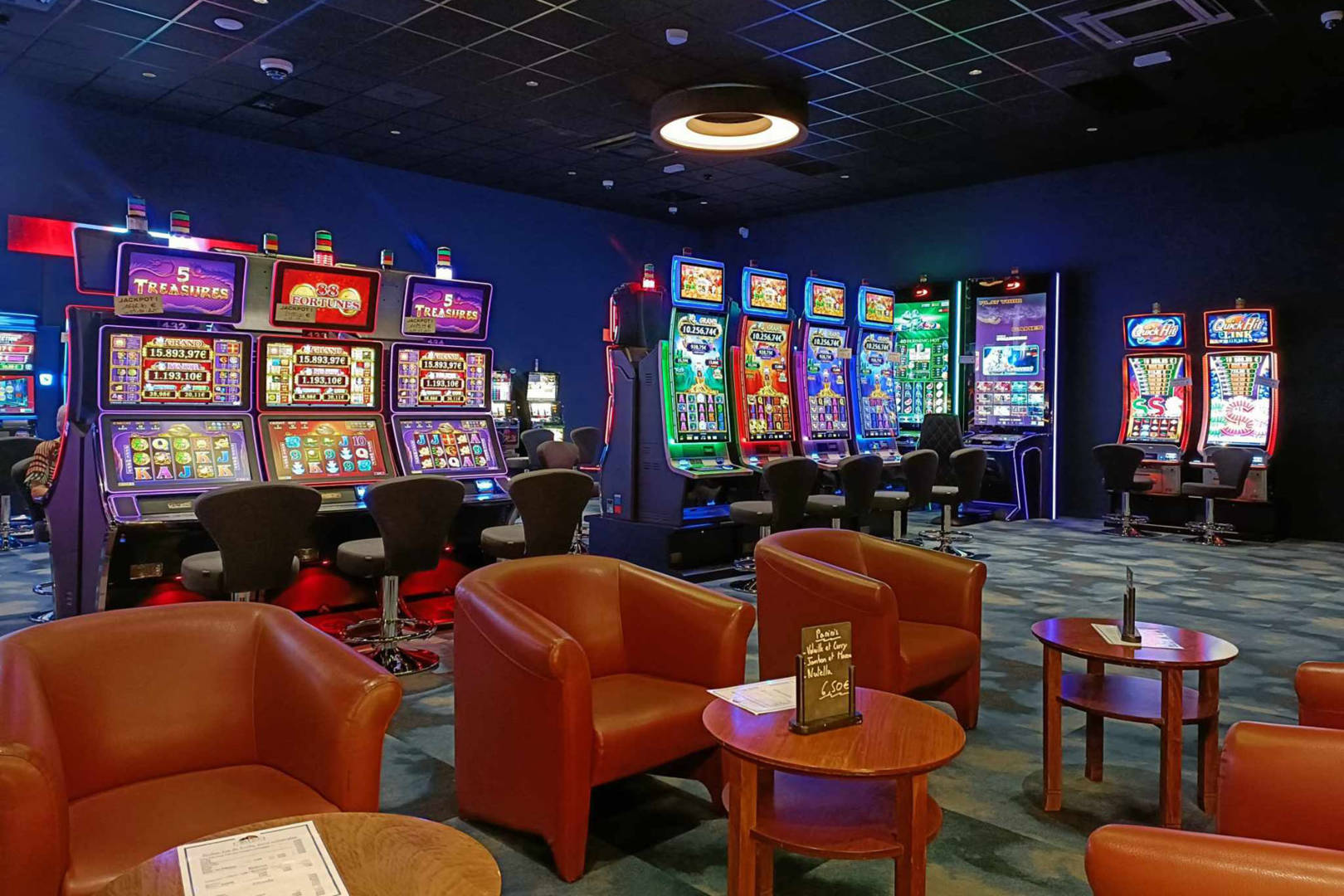 50 machines à sous, jeux de la boule ; roulette et black jack électroniques.