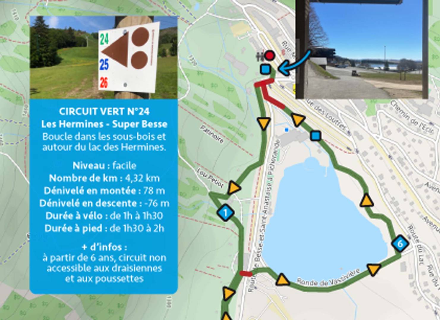 Départ en bas de la Maison du Tourisme possibilité de le faire à pied et en VTT (non accessible aux draisiennes et poussettes). Suivre le circuit vtt vert n°24