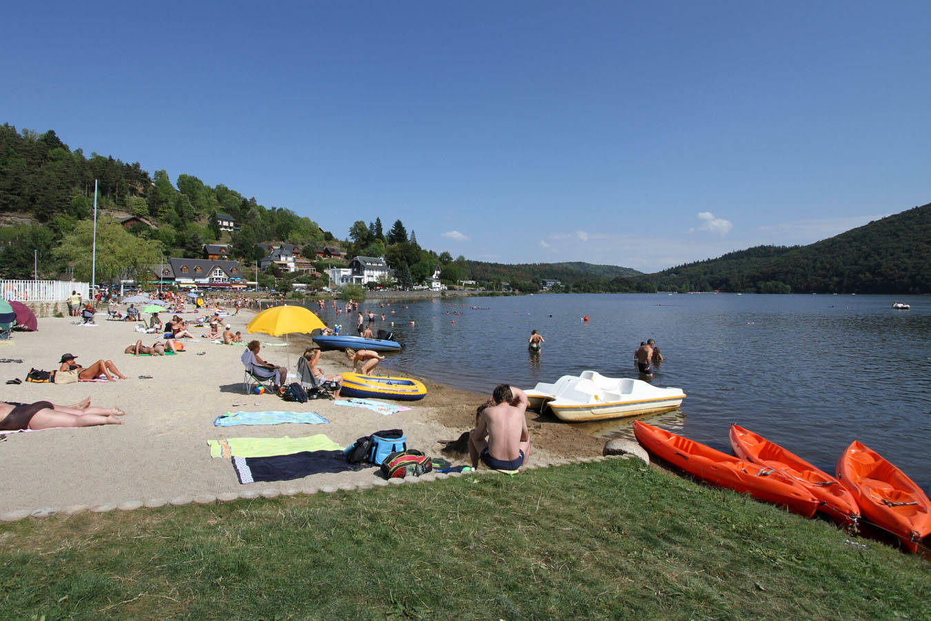 Plage ‘Chambon ‘: aire de jeux sécurisée avec toboggans, balançoires, tyrolienne, ponts suspendus… Pataugeoire en accès libre en juillet-août (sous la responsabilité des parents). Tables de pique-nique, bancs, WC, point d’eau, coin change et parking à proximité.