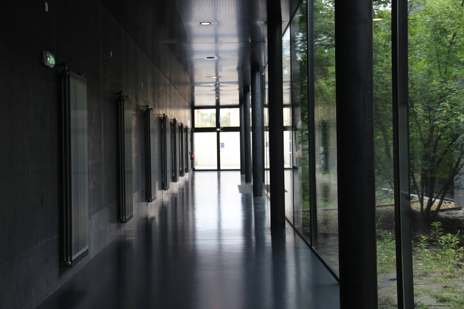 Construit en béton anthracite, rappelant la pierre volcanique locale, Le Caméléon est semi-enterré afin de ne pas rivaliser avec le paysage ouvert sur la Chaîne des Puys. Seuls deux volumes géométriques affleurent, recouverts de toitures-terrasses végétalisées, se fondant ainsi dans leur environnement naturel.