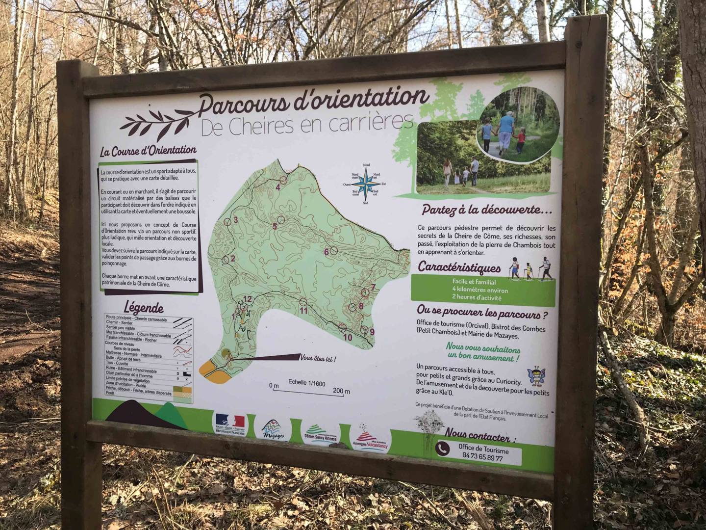 Parcours ludique d’orientation « De cheires en carrières » (à Mazayes, à proximité de Vulcania).4.4 km – 1/2 journée d’activitéAccessible toute l’année et gratuit.