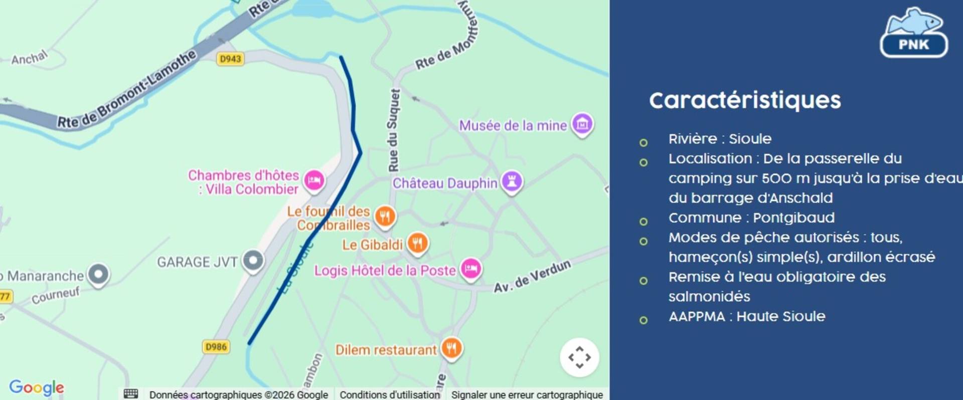 «de la limite amont : de la passerelle du camping, jusqu’à la limite aval: prise d’eau du barrage d’Anschald»