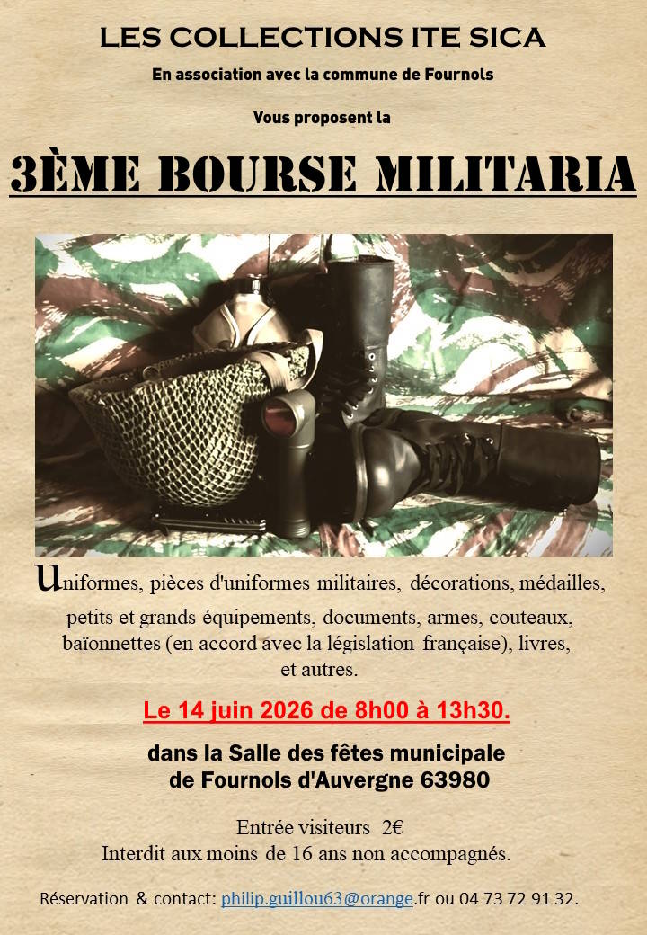 3ème bourse militaria Sale des fêtes municipaleLe bourg63980 Fournols