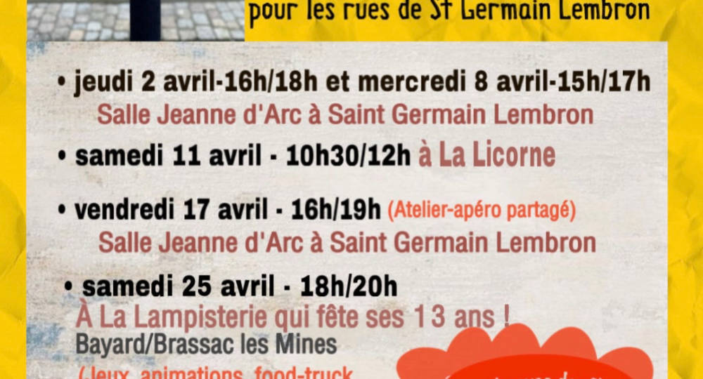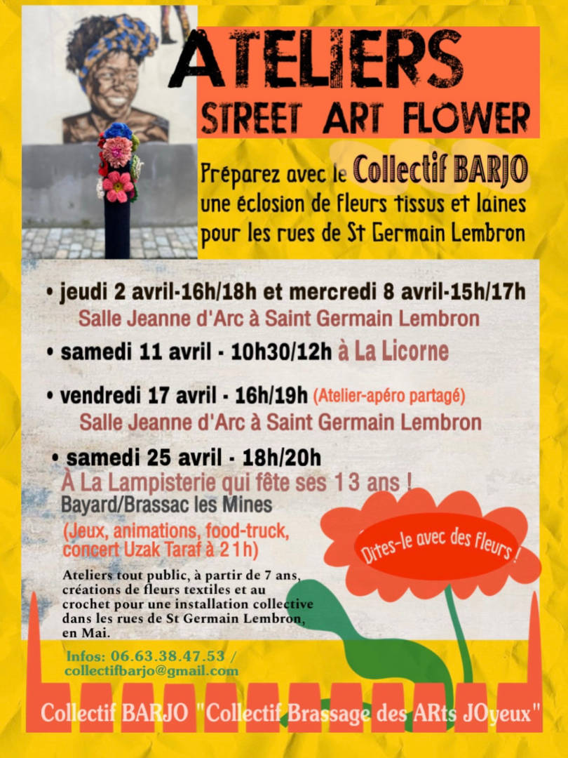 Pour une installation citoyenne et collective « Street Art Flower » en mai dans les rues de Saint-Germain Lembron ! Débutants bienvenus, vous repartirez avec un savoir-faire fleuri !