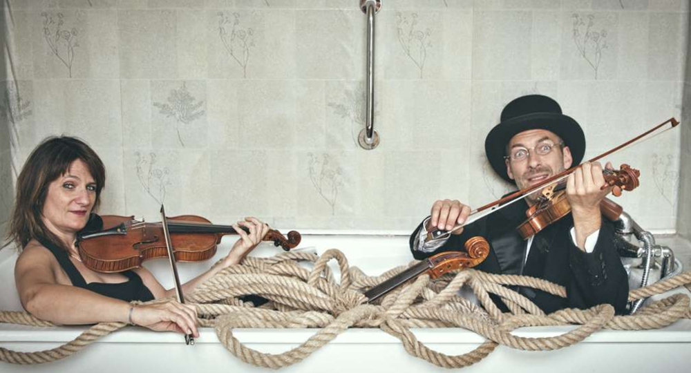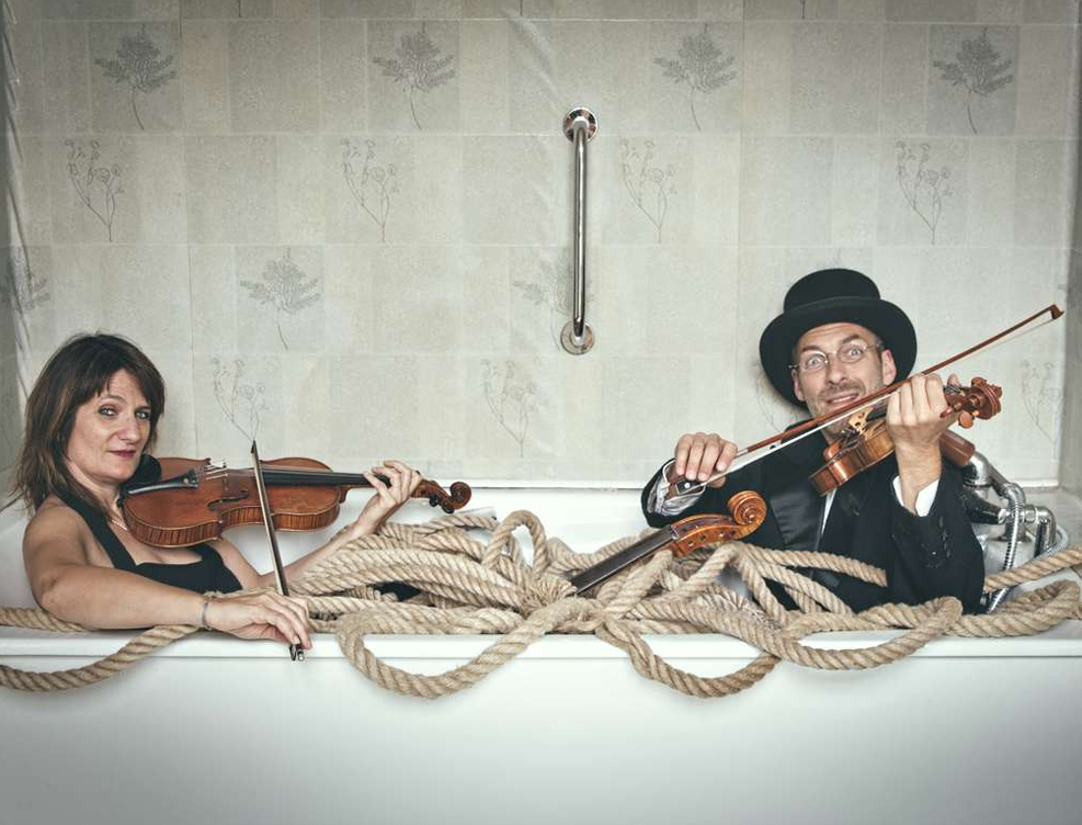 Leur laboratoire itinérant leur permet de confronter le public avec leurs expériences sonores et musicales. En bons scientifiques, ils ont plusieurs cordes à leur violon. Ils explorent les facettes de leurs instruments en tirant toutes les fi celles d’un répertoire musical très contrasté. De Vivaldi à la musique contemporaine, en passant par l’expérimentation sonore et l’improvisation, tout est dans leurs cordes. Accompagnés de dispositifs visuels farfelus ou poétiques, ils tenteront devant le public de découvrir enfin, le mystère des cordes !