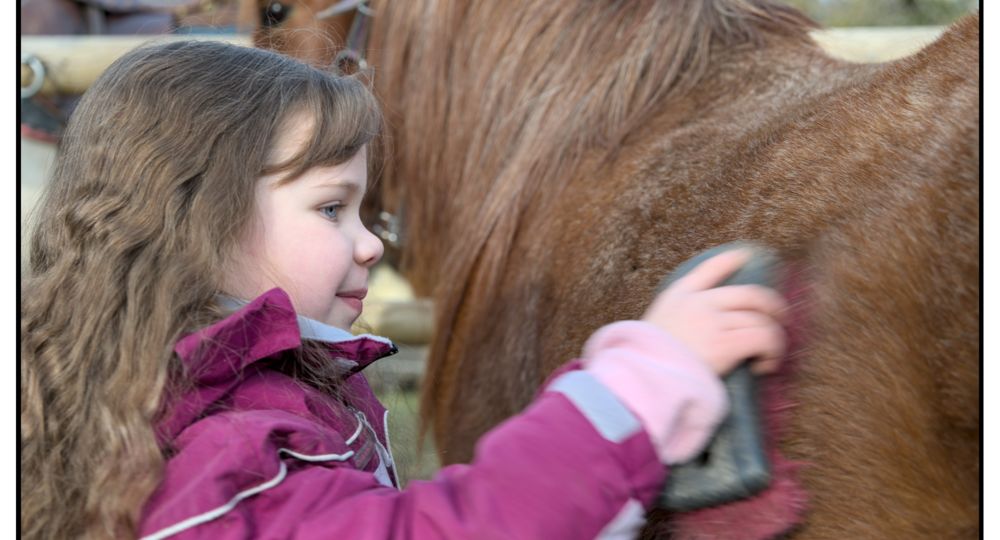 Une animation qui familiarise les enfants débutants ou confirmés au contact du poney ou cheval : pansage, harnachement…