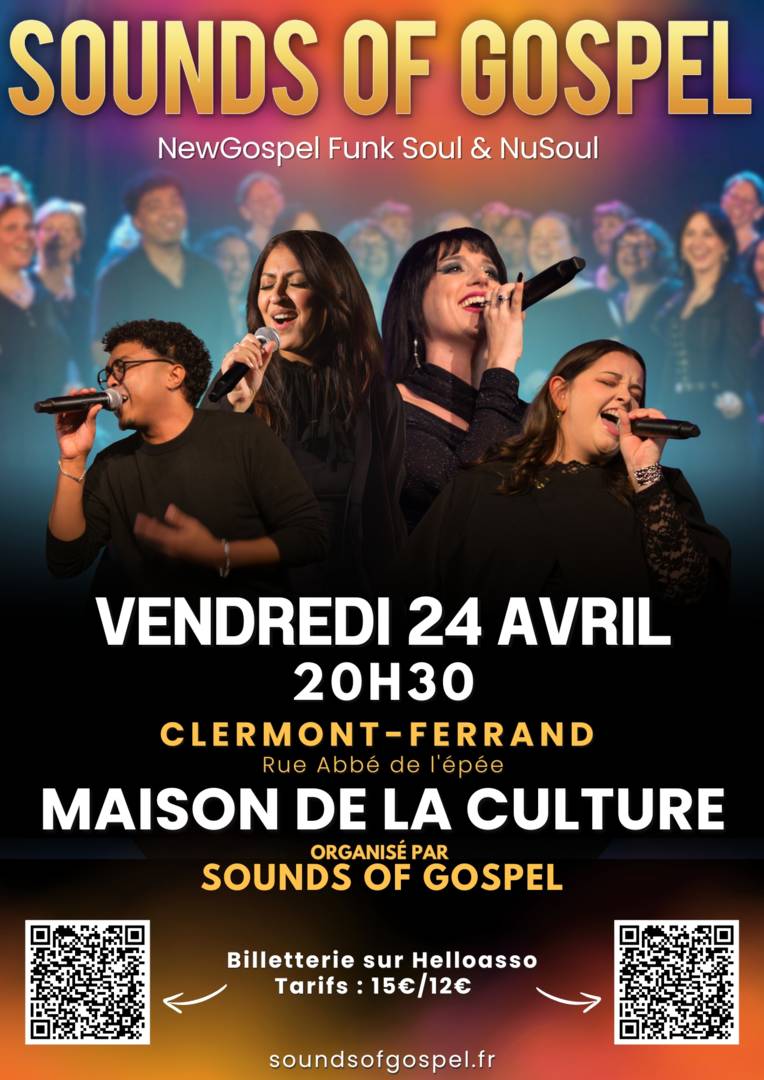 À travers une fusion audacieuse de New Gospel, Funk, Soul et NuSoul, ce groupe de Clermont-Ferrand vous embarque dans un spectacle intense, moderne et profondément vivant. Entre puissance vocale, grooves irrésistibles et émotions partagées, Sounds of Gospel propose bien plus qu’un concert : une véritable expérience musicale.