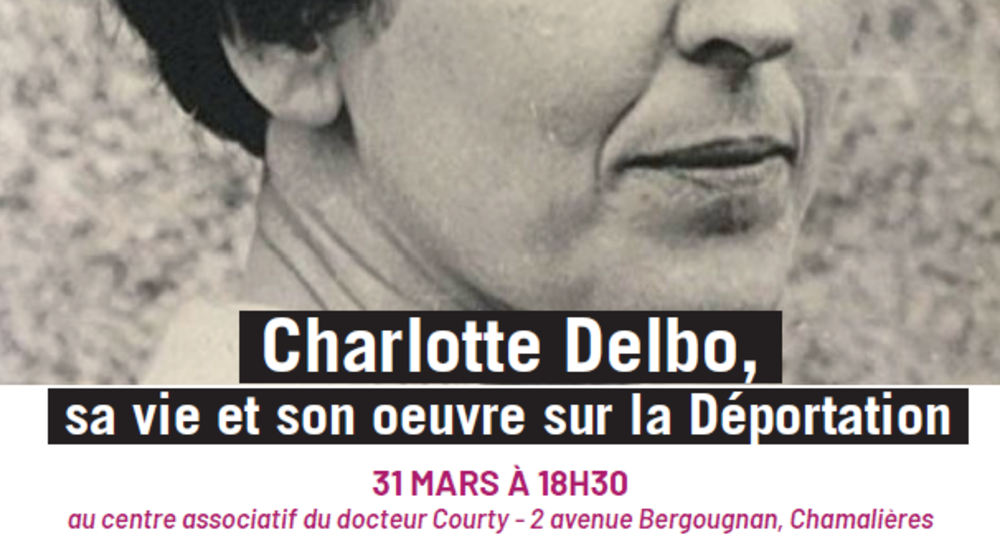 Conférence : Charlotte Delbo, sa vie et son œuvre sur la Déportation Centre associatif du Docteur Courty2 avenue Bergougnan63400 Chamalières