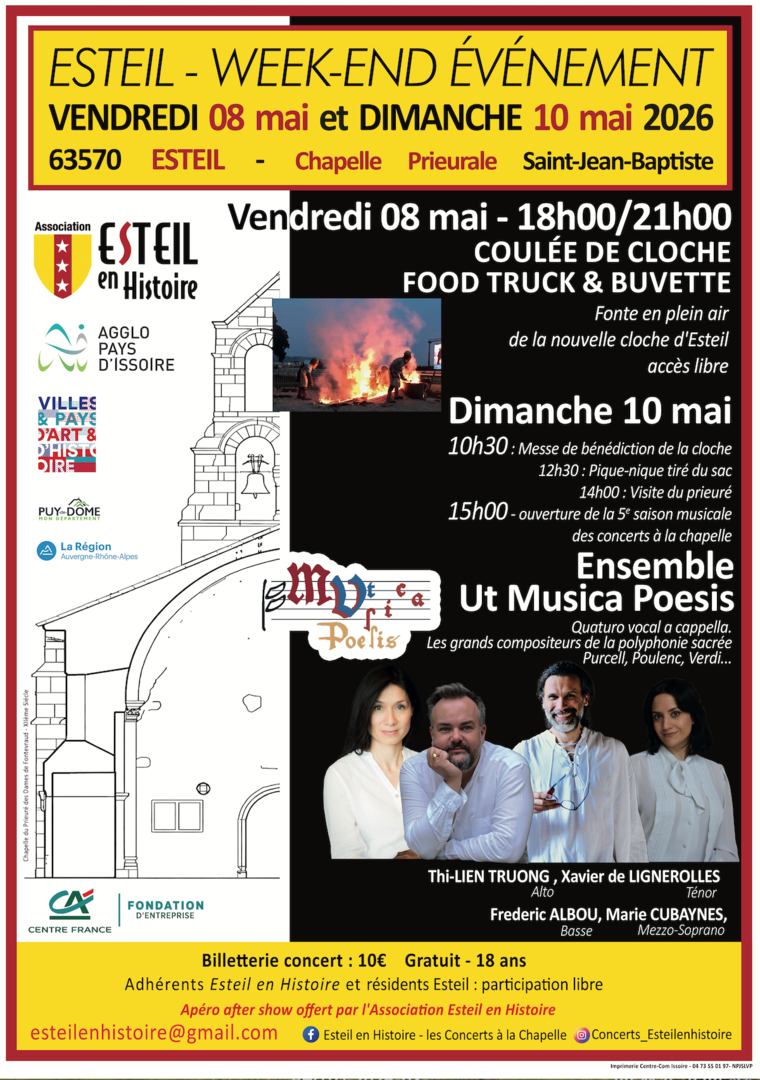 Dimanche dès 10h30 messe de bénédiction de la nouvelle cloche suivi d’un pique-nique tiré du sac et de l’ouverture à 15h de la saison des concerts à la chapelle du prieuré avec l’ensemble Ut(…)