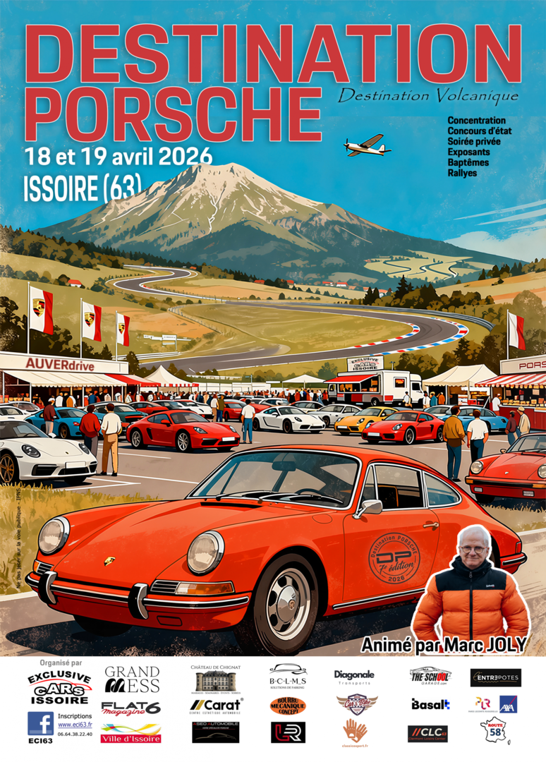 9h–17h : grande concentration Porsche à AUVERdrive (exposition, animations, musée Voxan, vue sur le circuit).