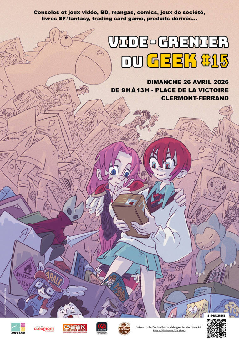 Depuis 2017, le Vide-Grenier du Geek de Clermont-Ferrand est le rendez-vous incontournable des passionné·es de pop culture et des amateur·rices de bonnes trouvailles ! Retrouvez-nous le 26 avril 2026, de 9h à 13h, sur la place de la Victoire.