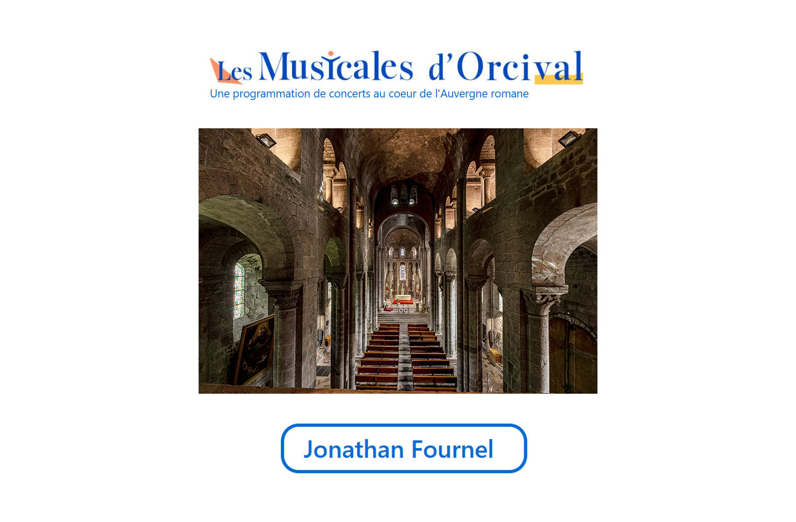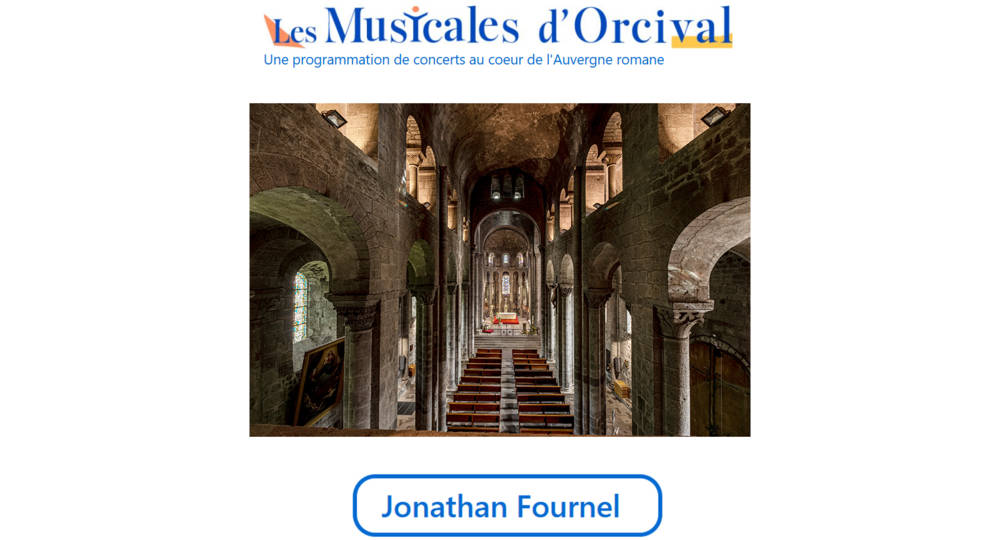 Troisième concert du Festival des Musicales d’Orcival. Jonathan Fournel se produira au piano au coeur de la Basilique.