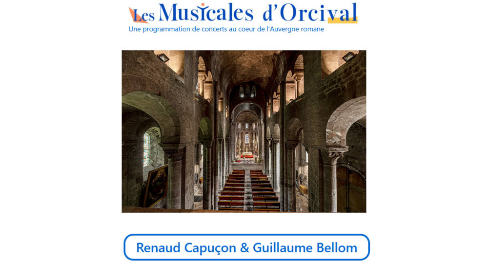 Quatrième concert du Festival des Musicales d’Orcival. Renaud Capuçon, célèbre violoniste, viendra avec son pianiste Guillaume Belomm illuminer la Basilique Notre-Dame d’Orcival