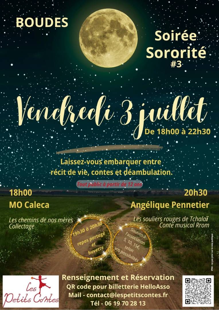 L’association Les Petits Contes souhaite mettre à l’honneur cette force en programmant des femmes qui à travers leurs arts nous emmèneront dans cette énergie. Marie-Odile CALECA de Parole Conteuse et Angélique PENNETIER seront à l’honneur à travers leurs récits profonds de paroles de femmes et de contes Rrom.