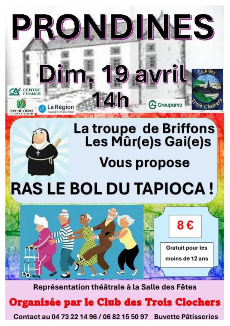 Théâtre – Ras le bol du tapioca ! Salle des fêtes63470 Prondines