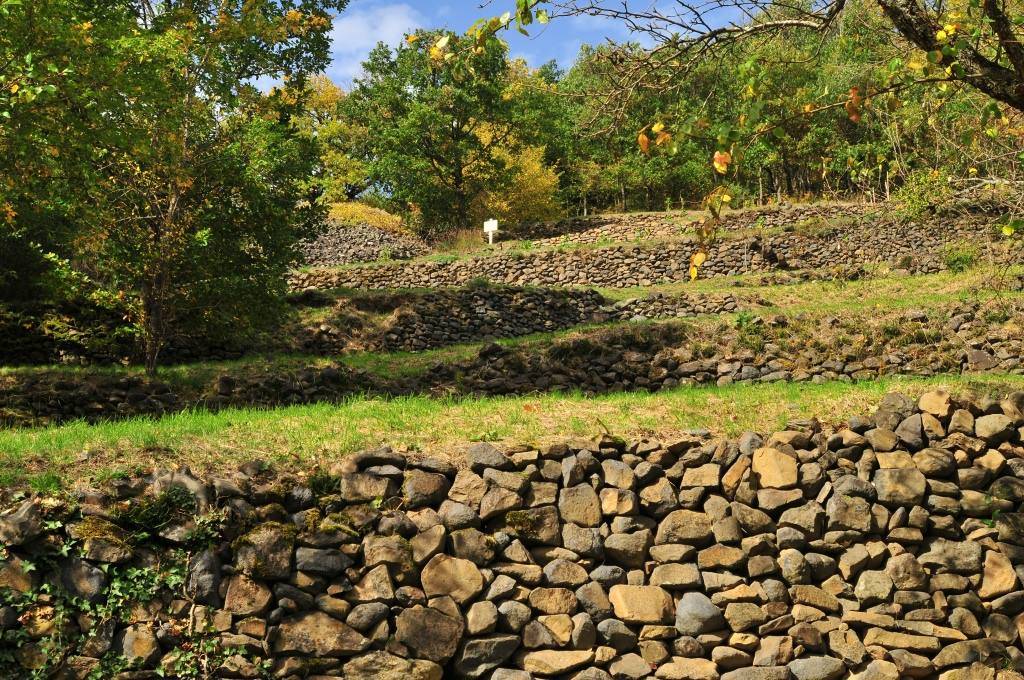 Balade commentée sur l’histoire des Pailhats, terrasses de culture soutenues par des murs en pierre sèche, remontées au fil des années par les bénévoles de l’association.