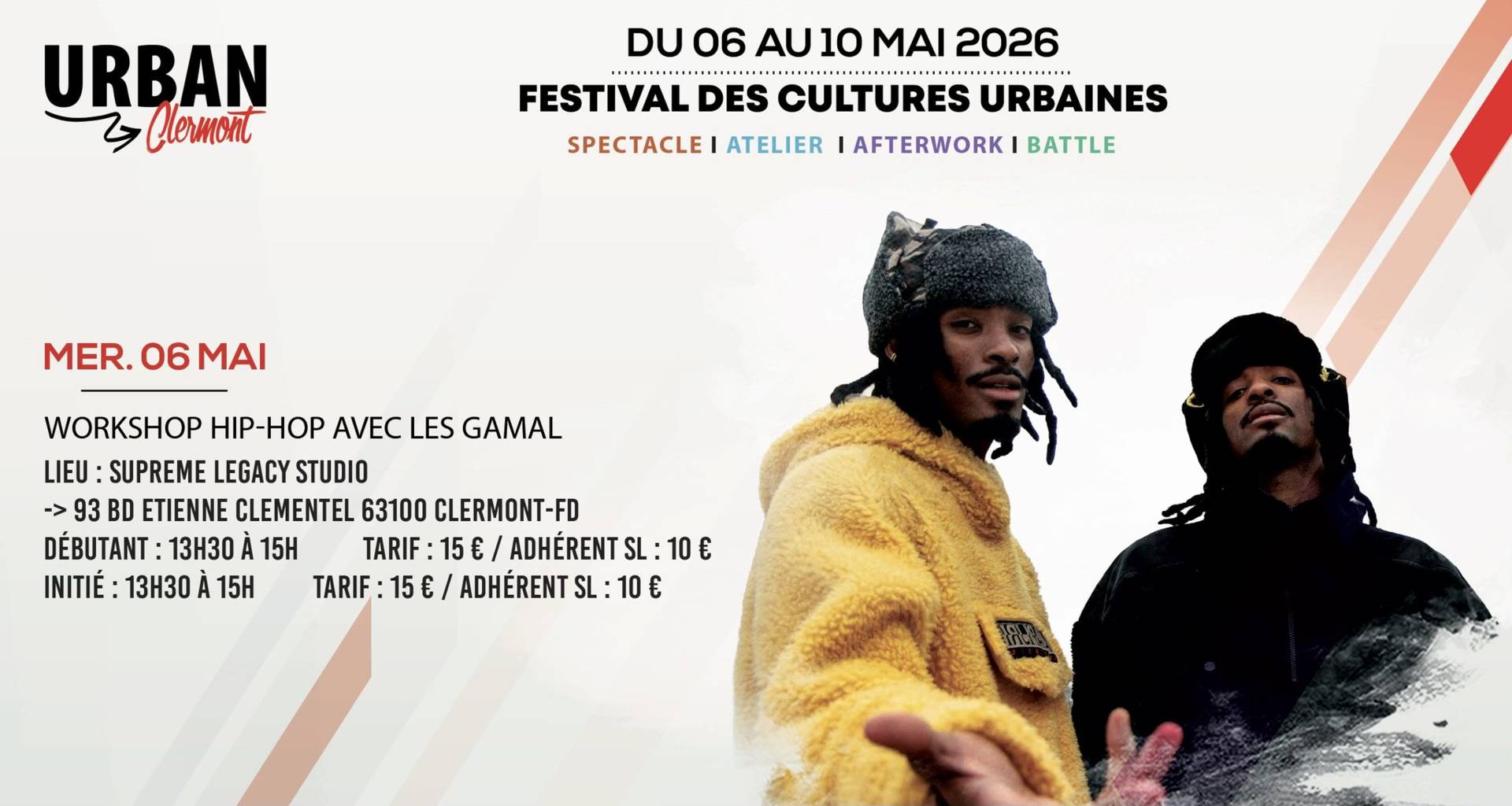 Reconnus pour leur énergie, leur musicalité et leur approche exigeante du mouvement, Les Gamal proposeront un stage autour des fondamentaux de la danse hip-hop, mêlant groove, technique et créativité.