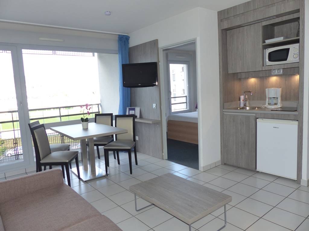 Apparthotel situé à mi-chemin entre le centre-ville et les grands axes autoroutiers.