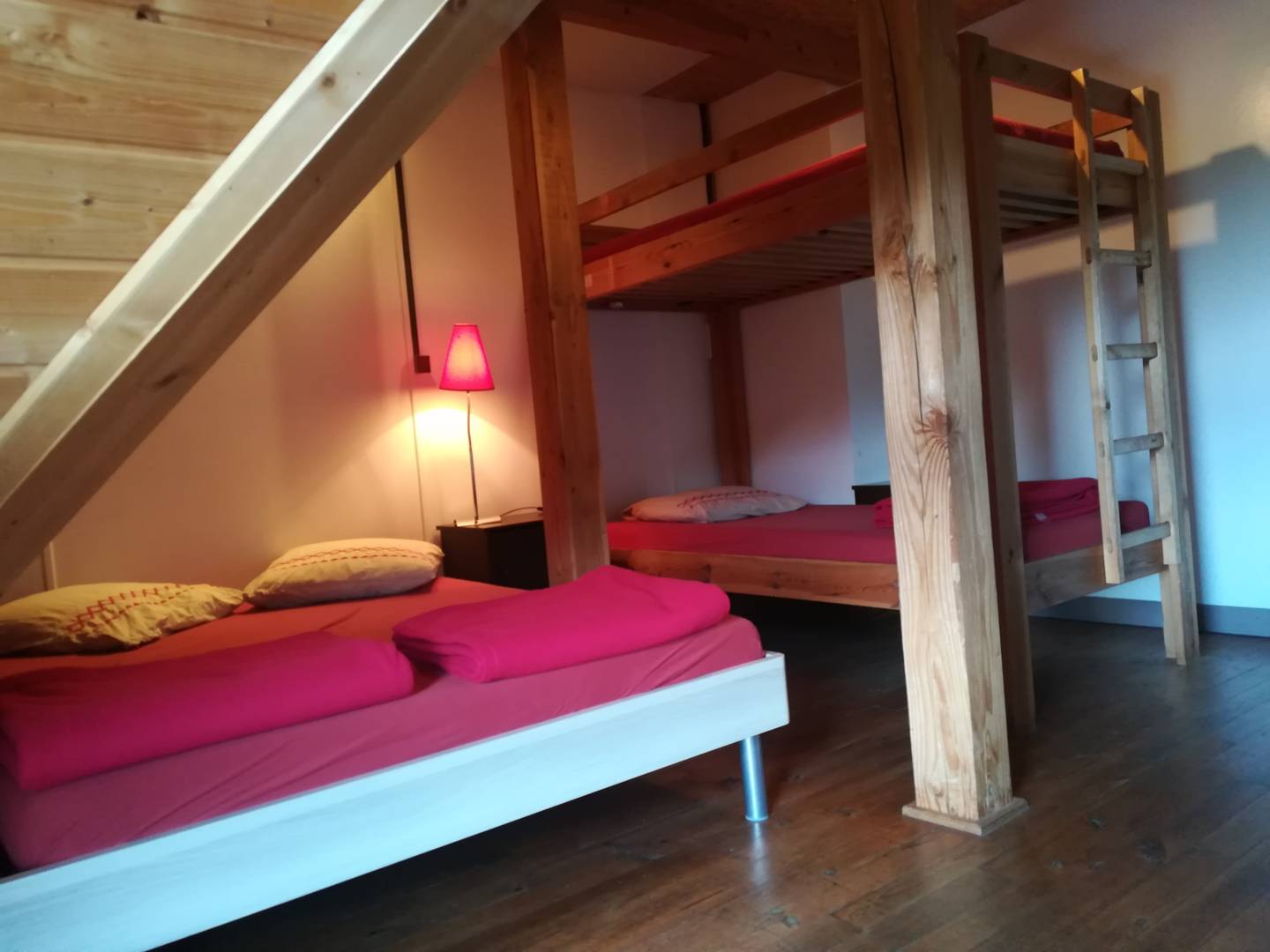Dans le gîte d’étape, proches des sanitaires, vous trouverez un dortoir de 12 lits superposés en 90 cm pour des escales petits-prix, deux chambres (une quadruple et 2 loges).