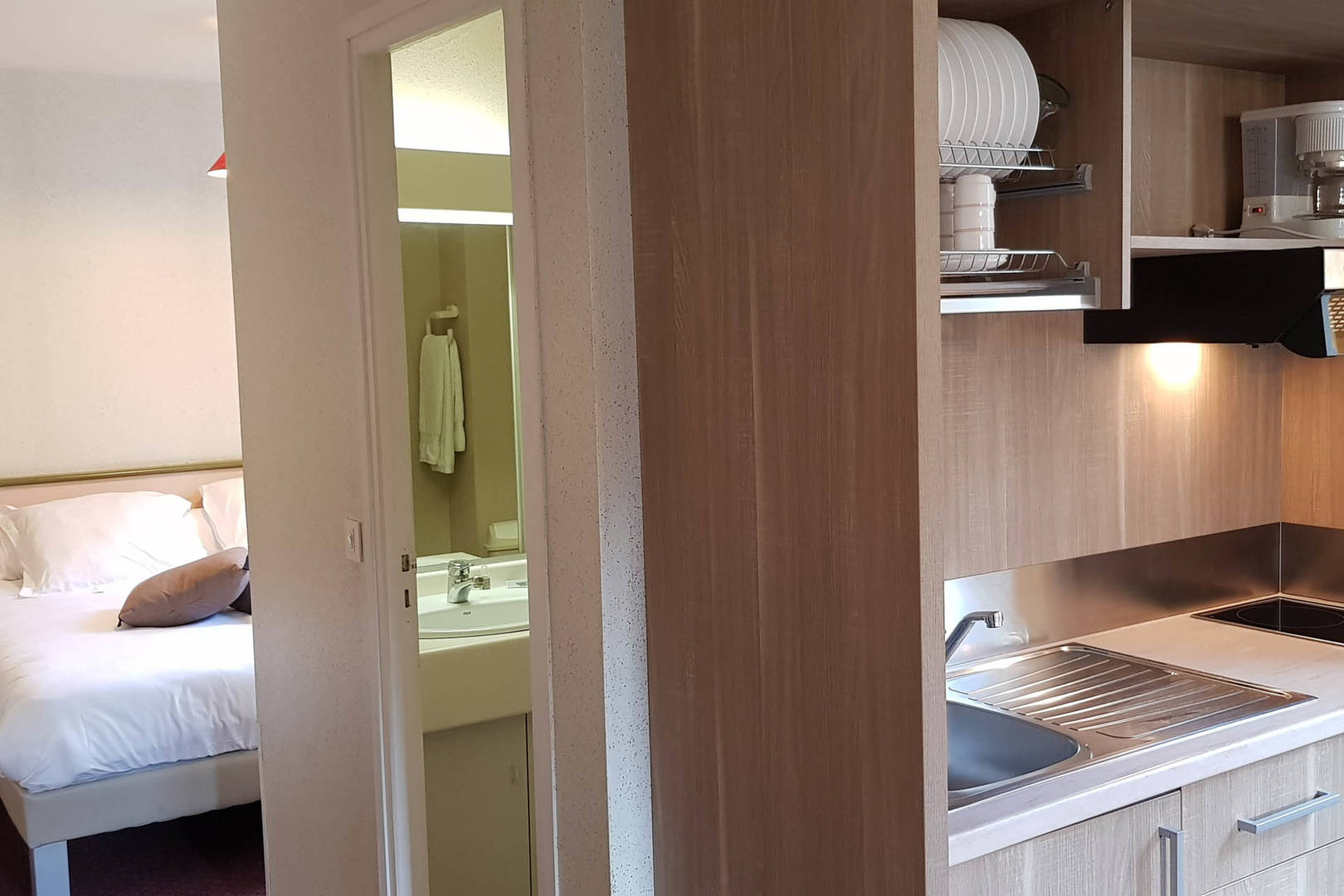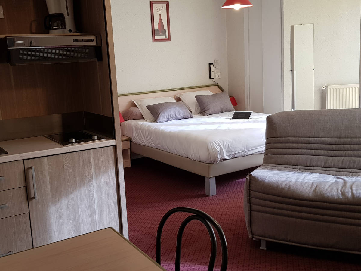 Cette résidence hôtelière de 16 studios répartis sur 3 étages, dont 2 au rez-de-chaussée est desservie par un ascenseur. Les studios de 21 à 28 m² disposent d’un lit double, avec une literie de qualité, et sont équipés d’une kitchenette avec four micro-ondes, plaques vitrocéramiques et frigo. Bien située(…)