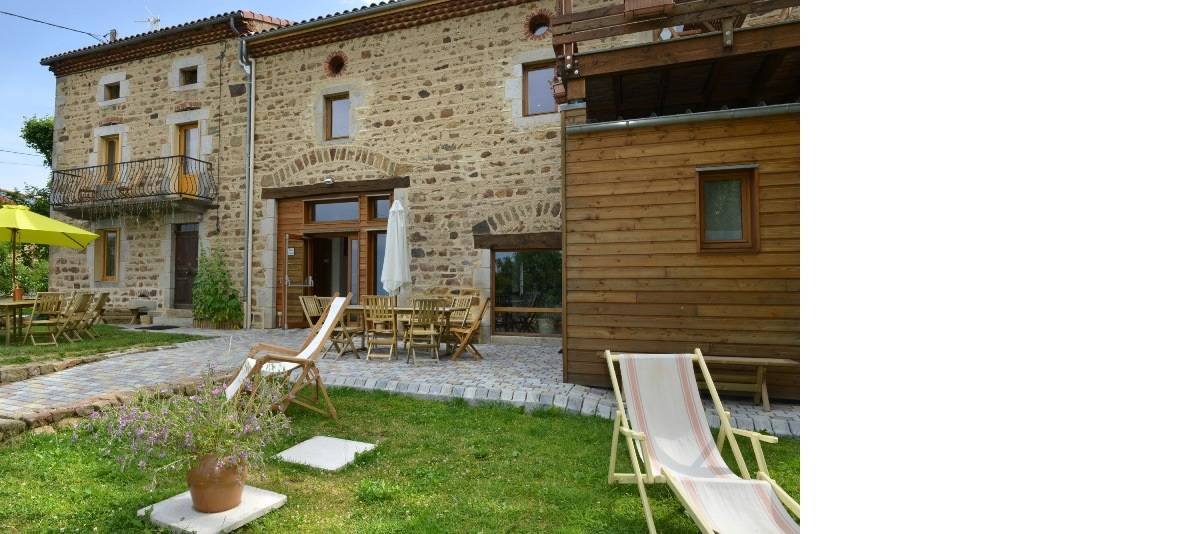 Les gîtes d’Hélio-ferme accueillent votre tribu à Brousse (63), au cœur du Livradois, petite niche écologique à seulement 30 minutes des sorties d’autoroutes (A72 et A75), au sein du parc naturel régional du Livradois Forez. Nous avons rénové cette grande maison du début du XXème siècle en respectant son cachet traditionnel et en utilisant des matériaux sains et naturels (bois, chaux, chanvre et terre cuite). Grâce aux balcons et terrasses vous pourrez profiter du lever du soleil à l’est derrière la forêt et côté ouest, vous jouirez d’un magnifique panorama sur la chaîne des volcans d’Auvergne.