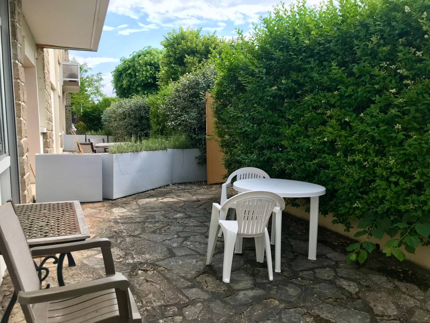 Face au Centre thermal Aïga, spacieux appartement F2 de plain pied bénéficiant d’une terrasse de 22m2 et d’une chambre au calme . Entrée indépendante dans une résidence privée.