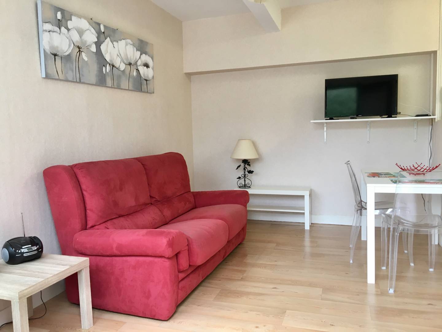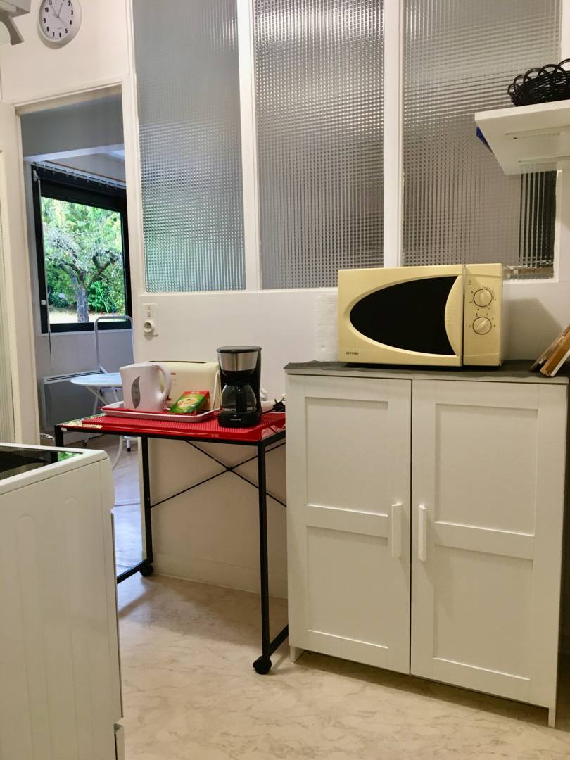 Pâquerette, parce qu’on les voit des fenêtres…, se compose : . d’un salon très clair avec canapé ,télévision écran plat de 80cms, d’un lecteur CD, . d’une cuisine équipée avec réfrigérateur-congélateur, four, 4 plaques vitrocéramique, micro-ondes, et lave linge, . d’une chambre au calme (lit 140cm) literie très confortable. . d’une salle d’eau, lave-linge. Possibilité à l’arrivée comme au départ de stationner votre véhicule devant l’appartement le temps de charger et décharger vos effets personnels. . Espace vert de 400m2 commun et à votre disposition. Expo ouest.