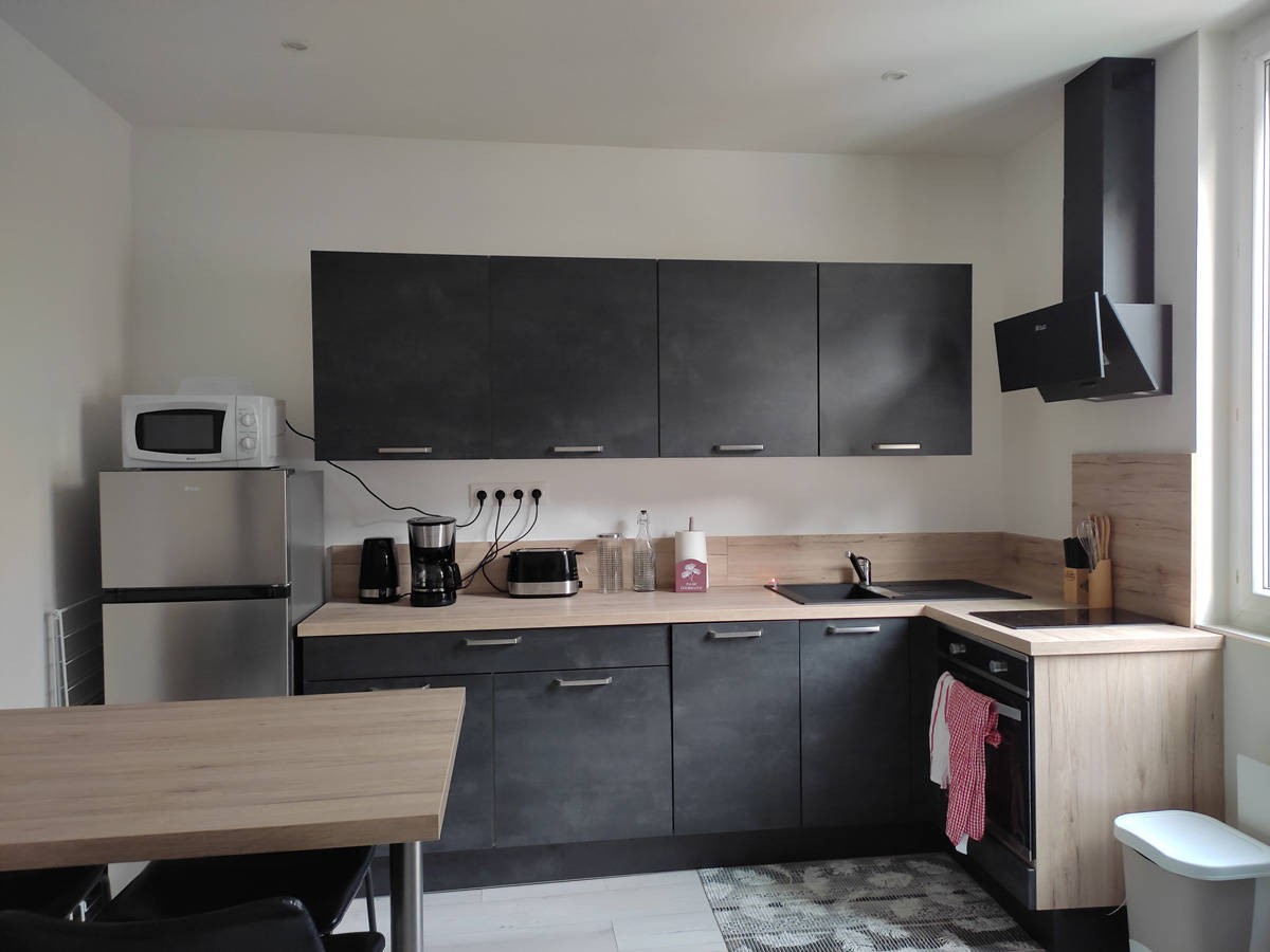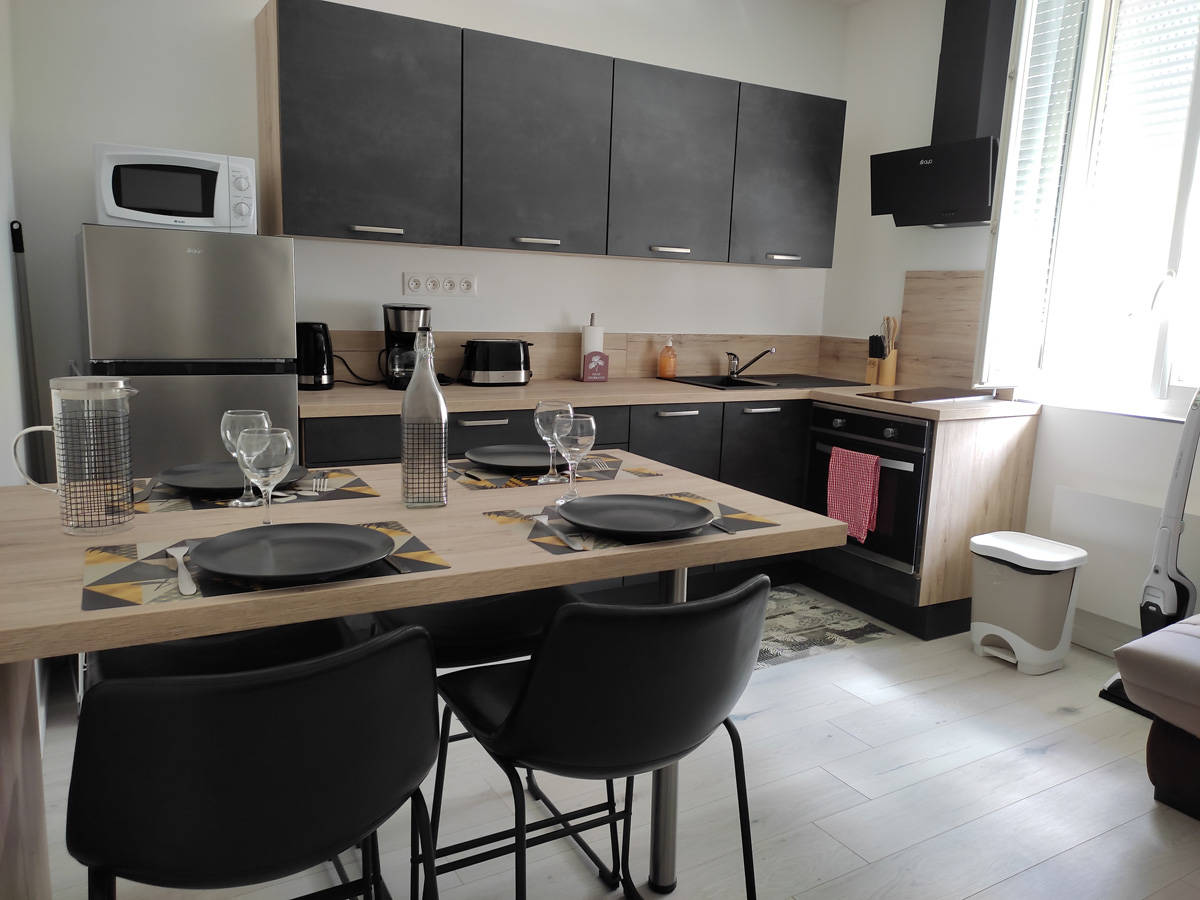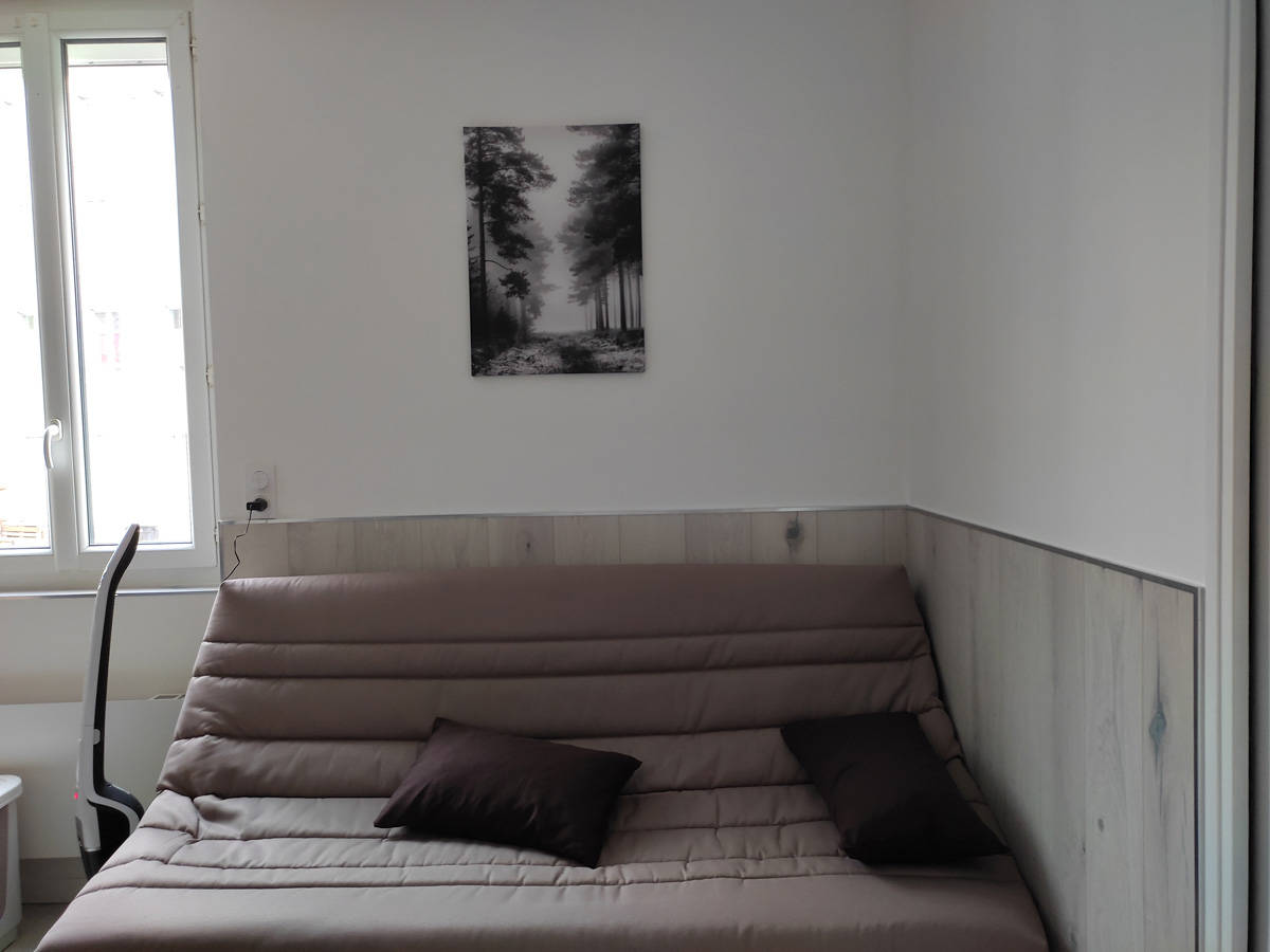 Meublé agréable de 30M² chez Gisèle et J.François. Entièrement rénové, situé au 1er étage d’un immeuble de 6 logements, stationnement gratuit dans la rue. Ce logement peut accueillir 2 à 4 personnes. Une chambre avec 1 lit 2 places et 1 lit canapée 2 places. Cuisine bien agencée, WIFI, salle de bain avec WC indépendant, lave linge et balcon. Arrivée autonome, ménage inclus, possibilité de location de draps