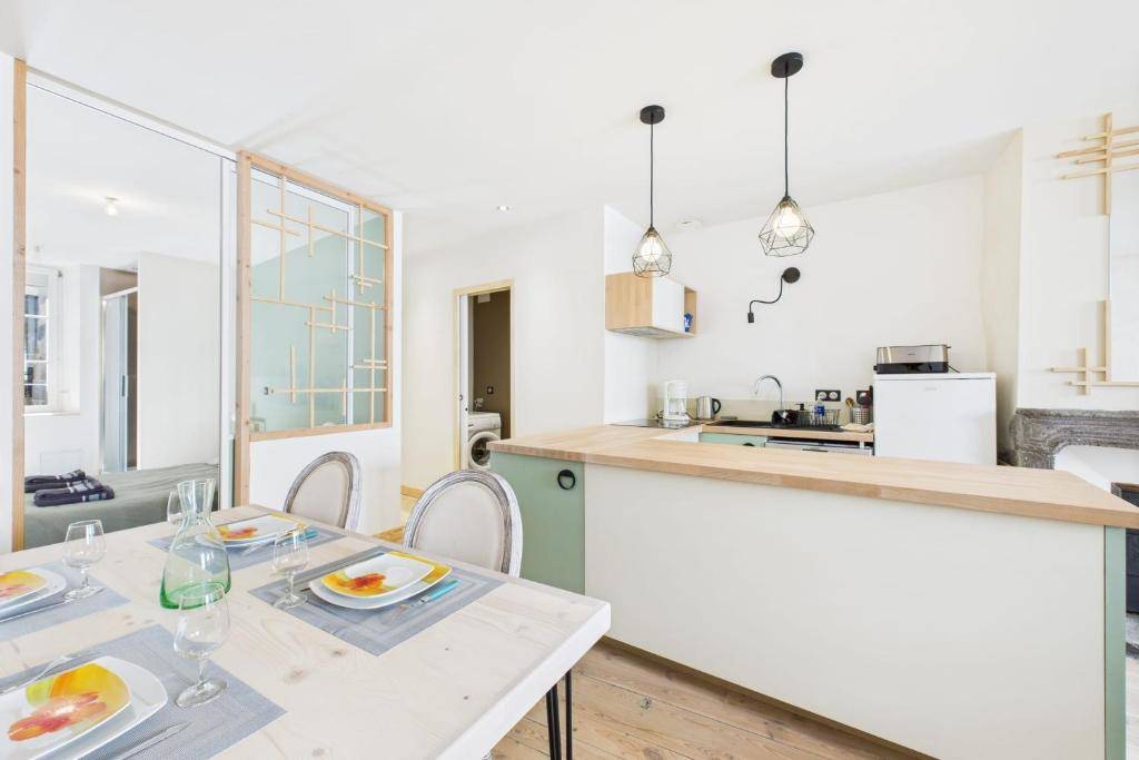 Au sein d’un immeuble ancien en plein centre-ville de Clermont-Ferrand, venez découvrir un appartement entièrement rénové par nos soins avec des matériaux écologiques (isolation en laine lin-chanvre-coton, meubles, aménagements et déco en bois massif) et parfaitement équipé mais toujours dans une démarche responsable (électroménager reconditionné, produits bio).