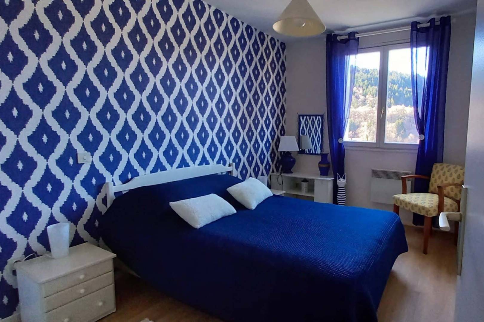 Il est composé d’un séjour avec canapé, coin cuisine, d’une chambre avec un lit de deux personnes et une chambre avec deux lits d’une personne avec vue dégagée sur la vallée. Salle de bain avec lave-linge, WC séparés.