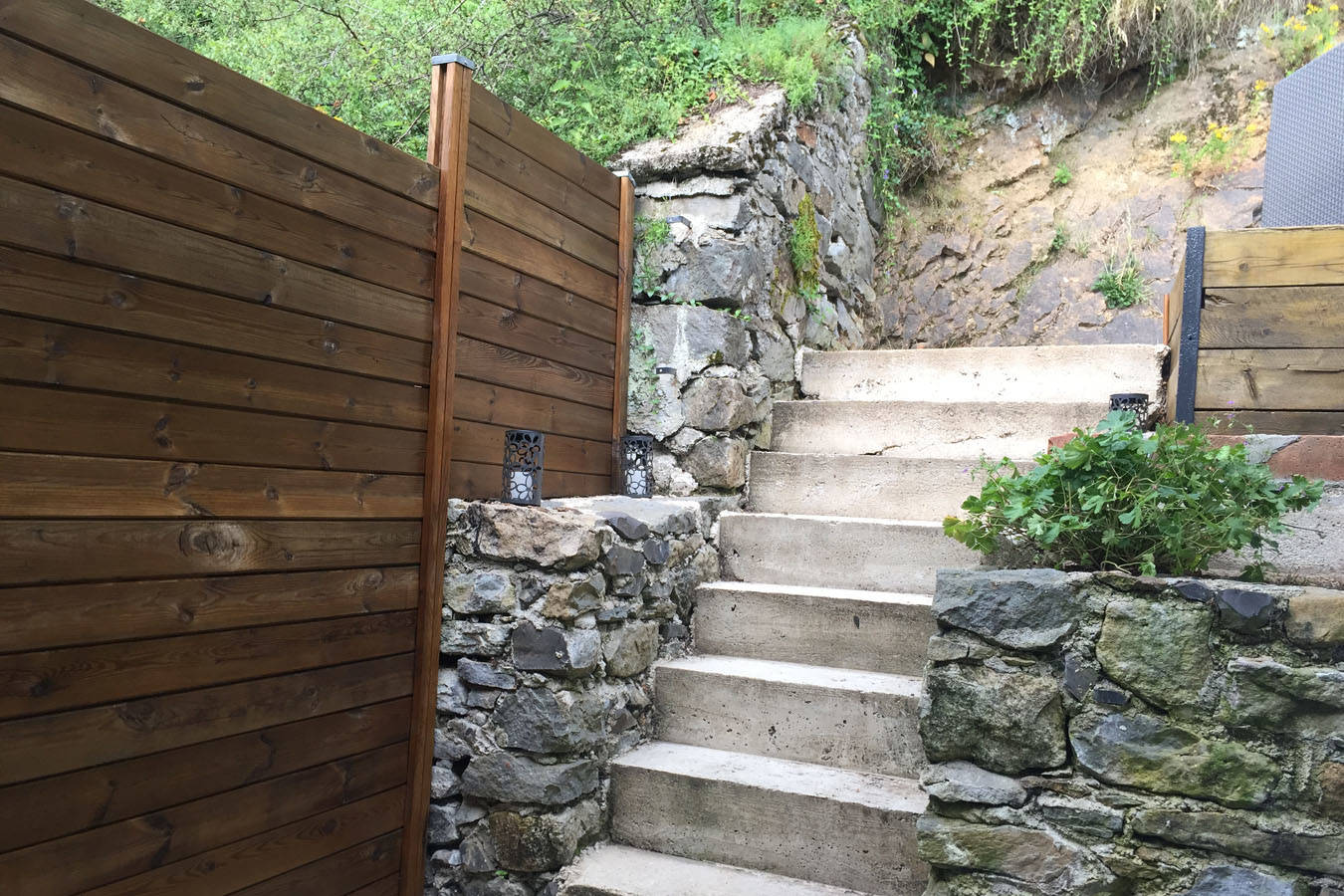 Maison sans vis à vis sur deux niveaux avec un grand garage, porte automatique au rez-de-chaussée. A 800 m du centre-ville, des Thermes et des commerces. Arrêt navette thermale devant la maison. Proche des chemins de randonnées.