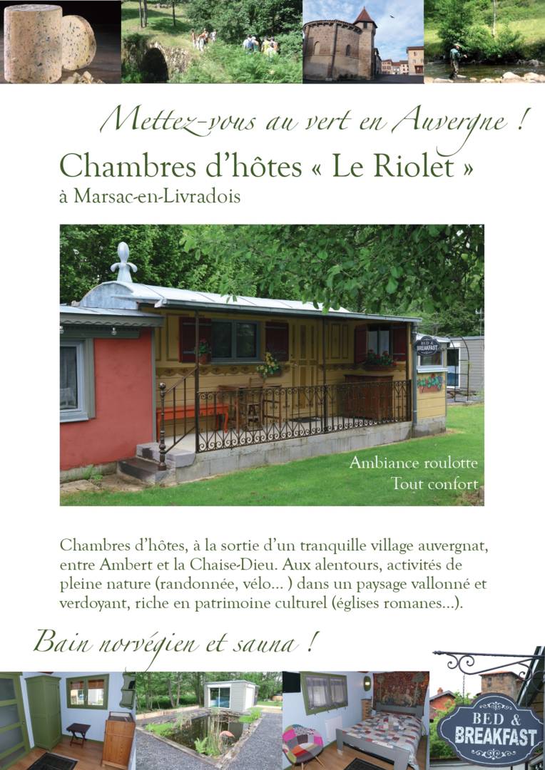 Chambre d’hôtes, à la sortie d’un tranquille village auvergnat, entre Ambert et la Chaise Dieu. Aux alentours, activités de pleine nature (randonnée, vélo…) dans un paysage vallonnée et verdoyant, riche en patrimoine culturel (églises, villages, etc.)