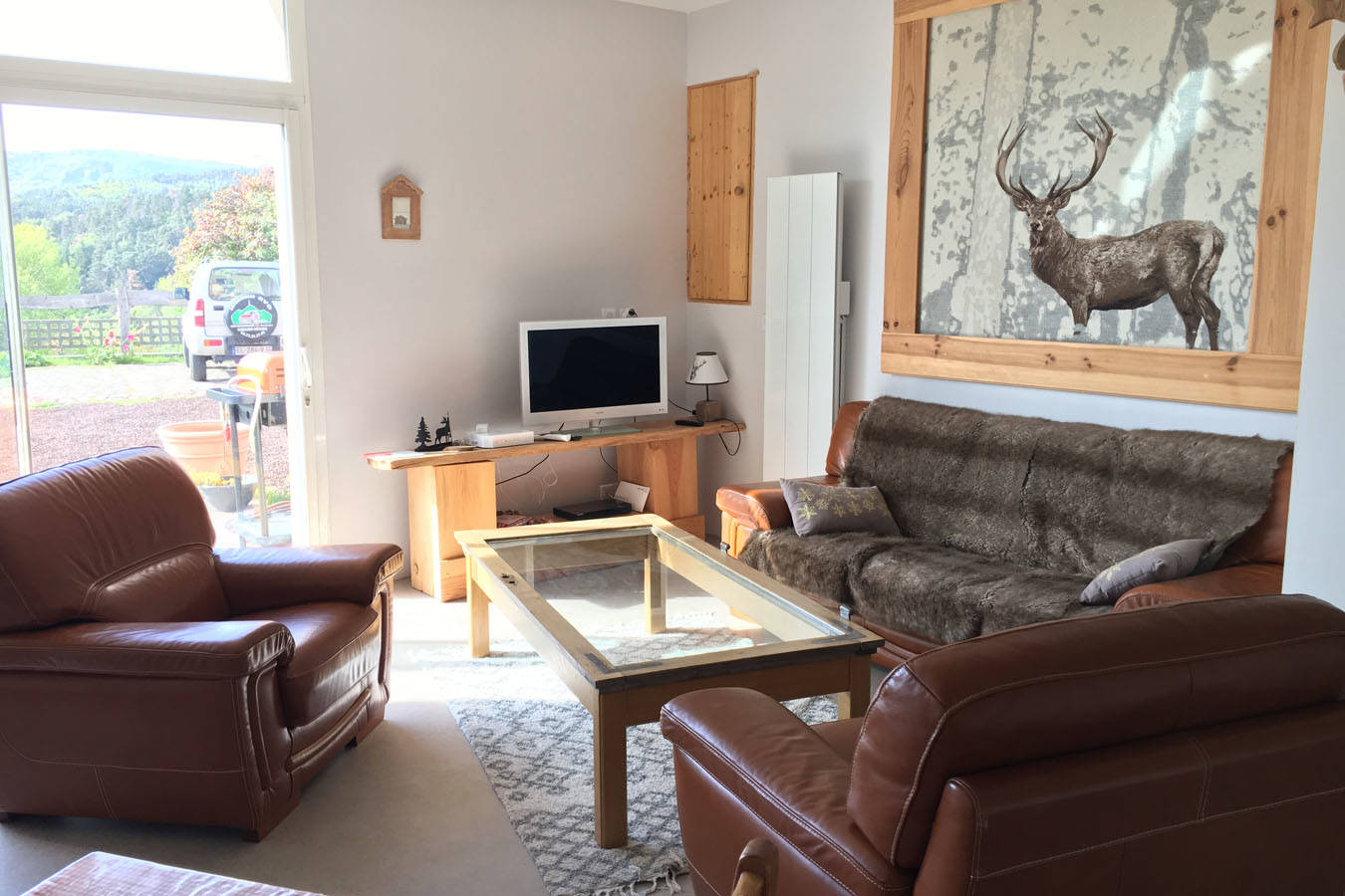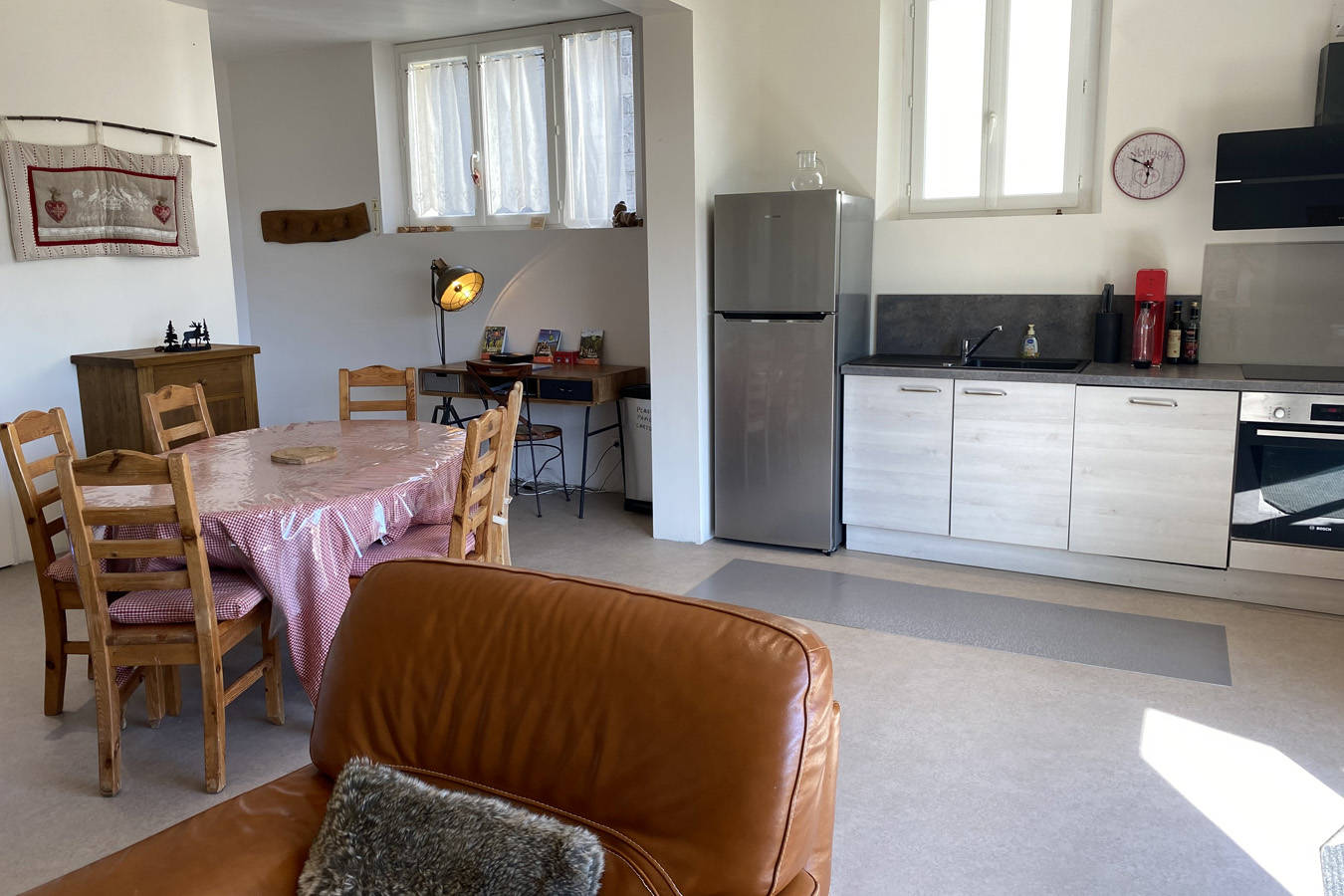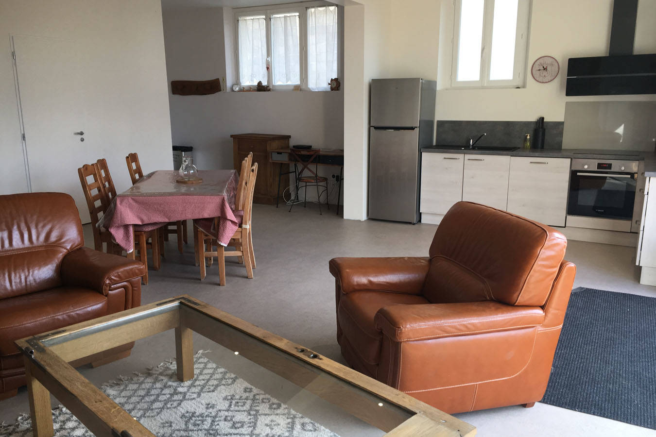 Partie jour, une belle pièce à vivre baignée de lumière avec des baies vitrées permettant un accès direct sur la terrasse.