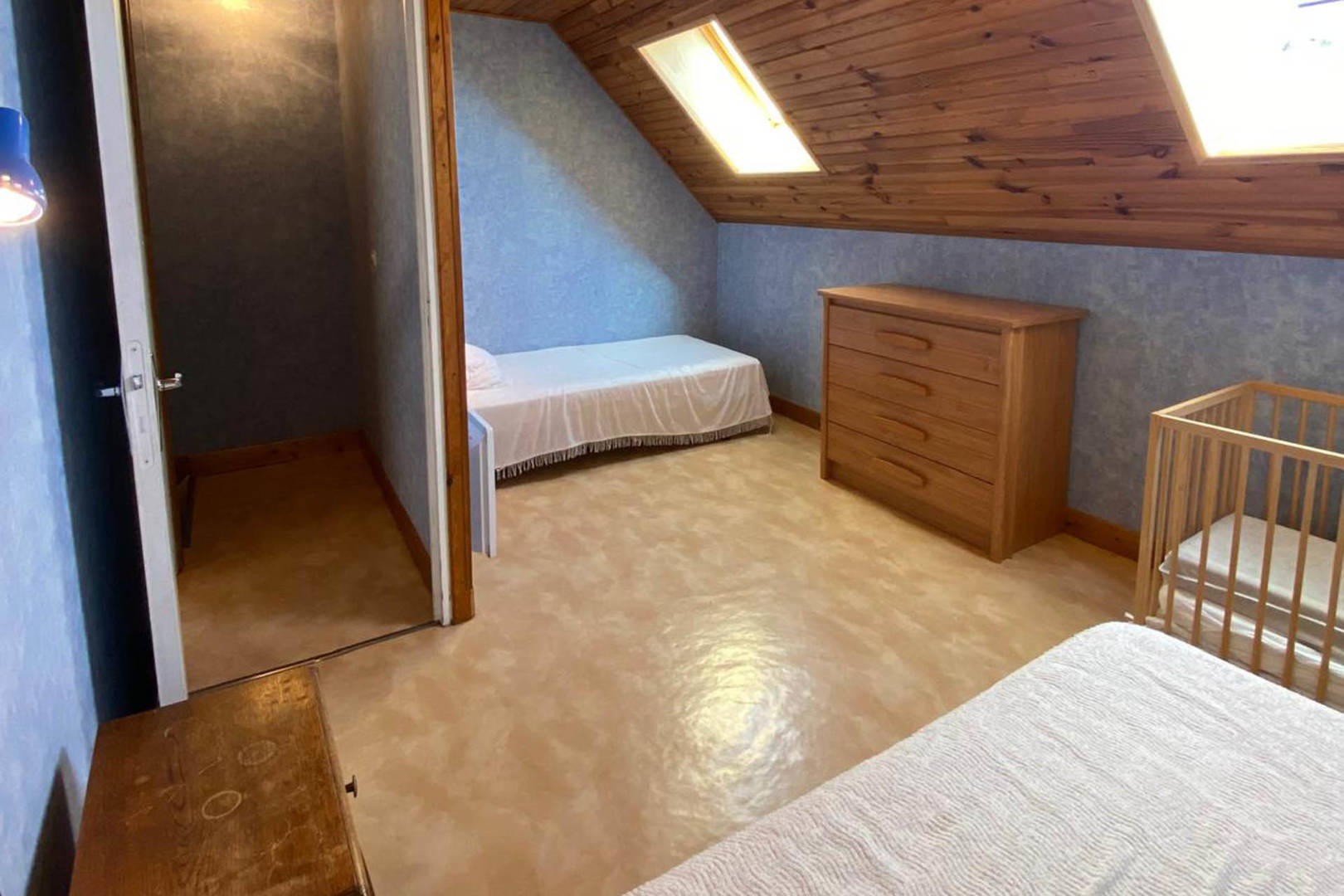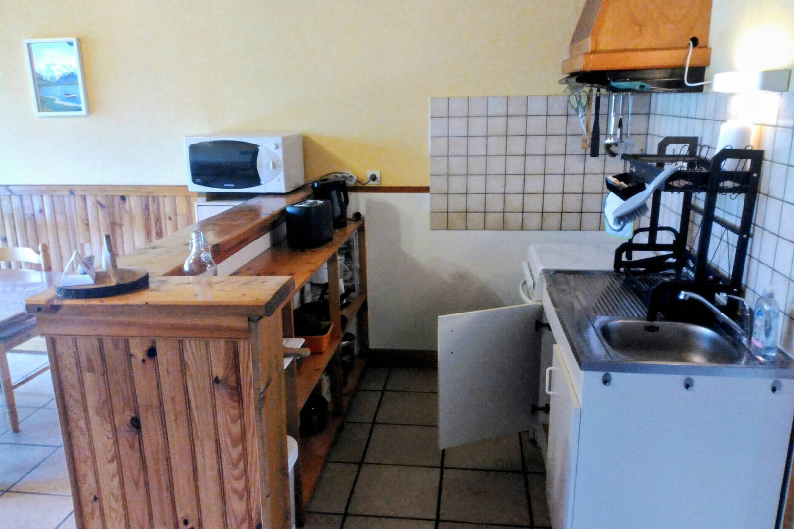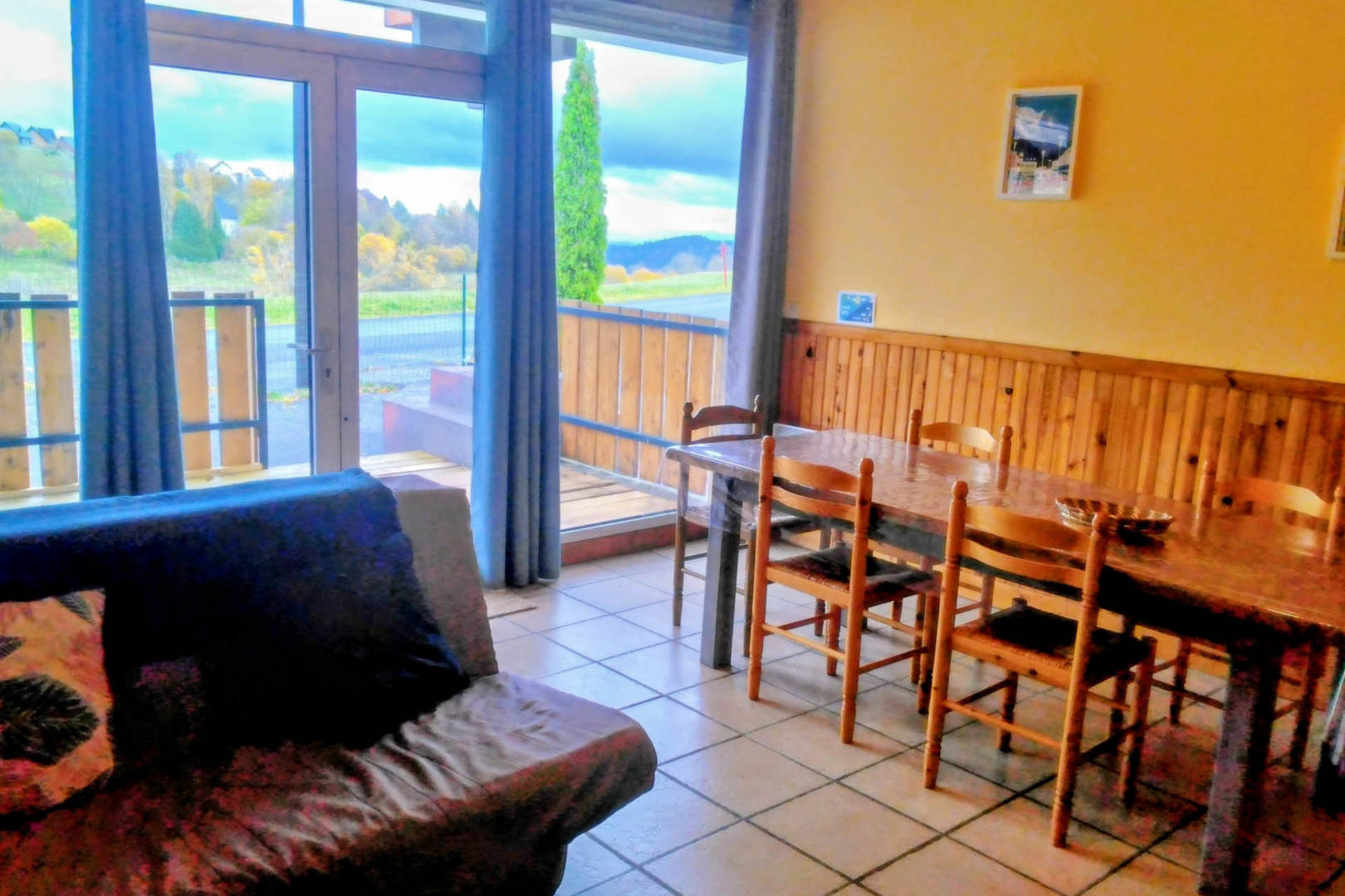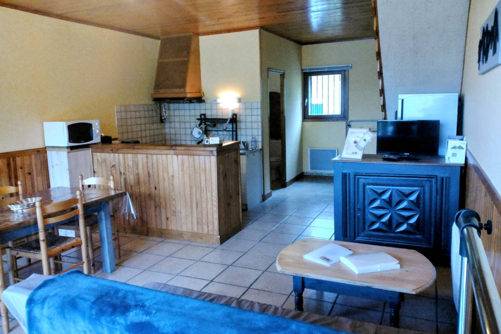 Au rez-de-chaussée de ce logement »Quiétude » se trouve une grande pièce de vie d’environ 30m2 avec son coin cuisine (plaques de cuisson), son salon (canapé convertible) et son coin repas. Une terrasse attenante offre une vue dégagée sur la vallée. On y trouve aussi une salle d’eau/WC.