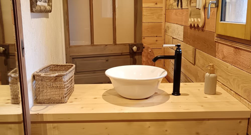 – Vous aurez accès à des sanitaires tout confort (2 douches, 1 wc, 1 lavabo) disponibles librement dans un chalet annexe à proximité de la cabane. Des produits de toilettes ainsi qu’un sèche cheveux seront à votre disposition.