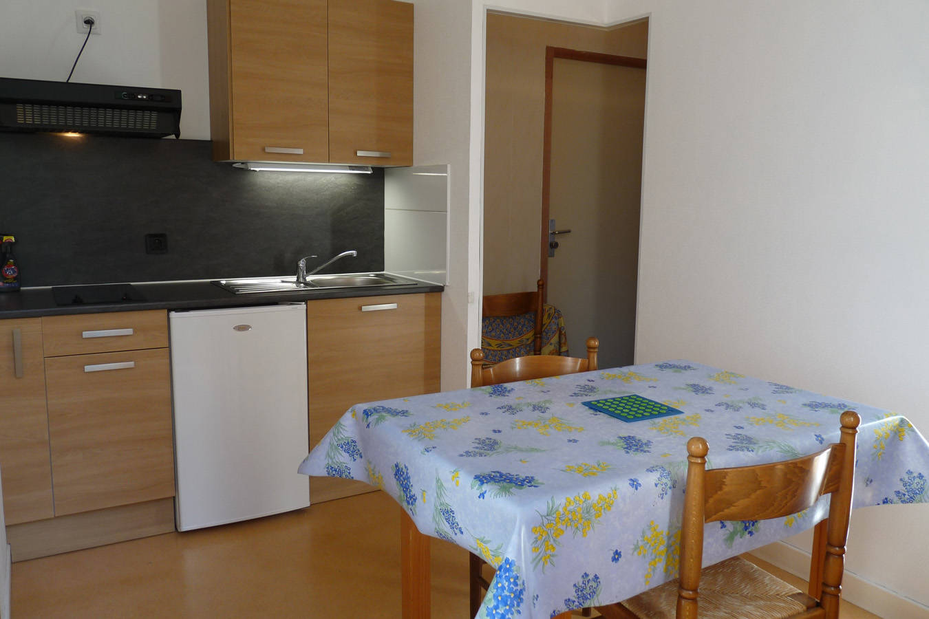 Situé au rez-de-chaussée de notre résidence, avec exposition sud et fenêtre sur cour privée. Il est constitué : – D’une pièce de vie avec cuisine aménagée, frigidaire avec compartiment congélateur, four, micro-ondes, deux plaques vitrocéramiques, bouilloire, cafetière, grille pain. – D’une chambre avec lit double en 140 X 190,(…)