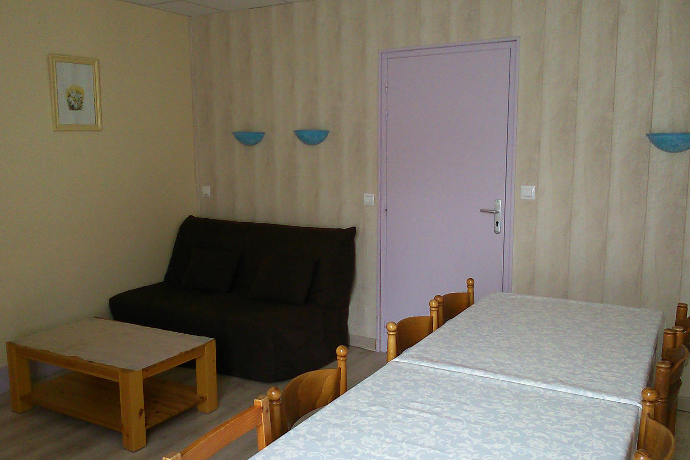 Meublé pouvant recevoir 6 personnes + un lit d’appoint possible pour enfant de 13 ans maximum. Situé au 1ᵉʳ étage avec exposition sud. Il est constitué d’une pièce de vie avec cuisine aménagée attenante, de deux chambres avec lits double disposant chacune d’une salle de bains avec douche et WC + Wi-Fi.