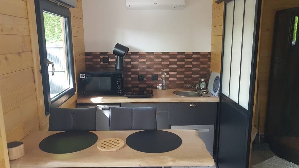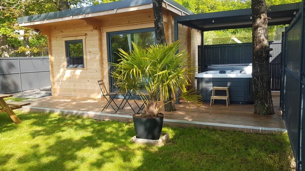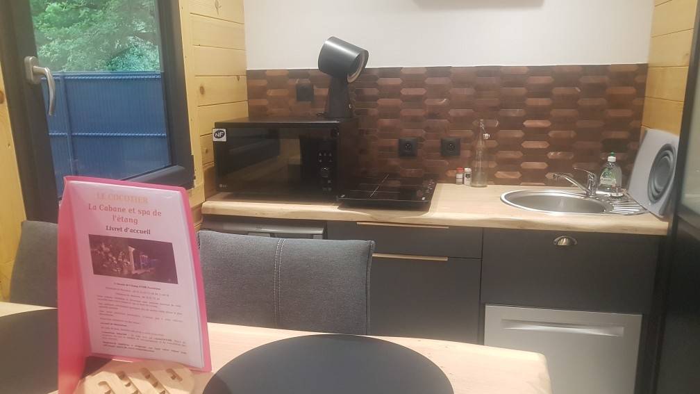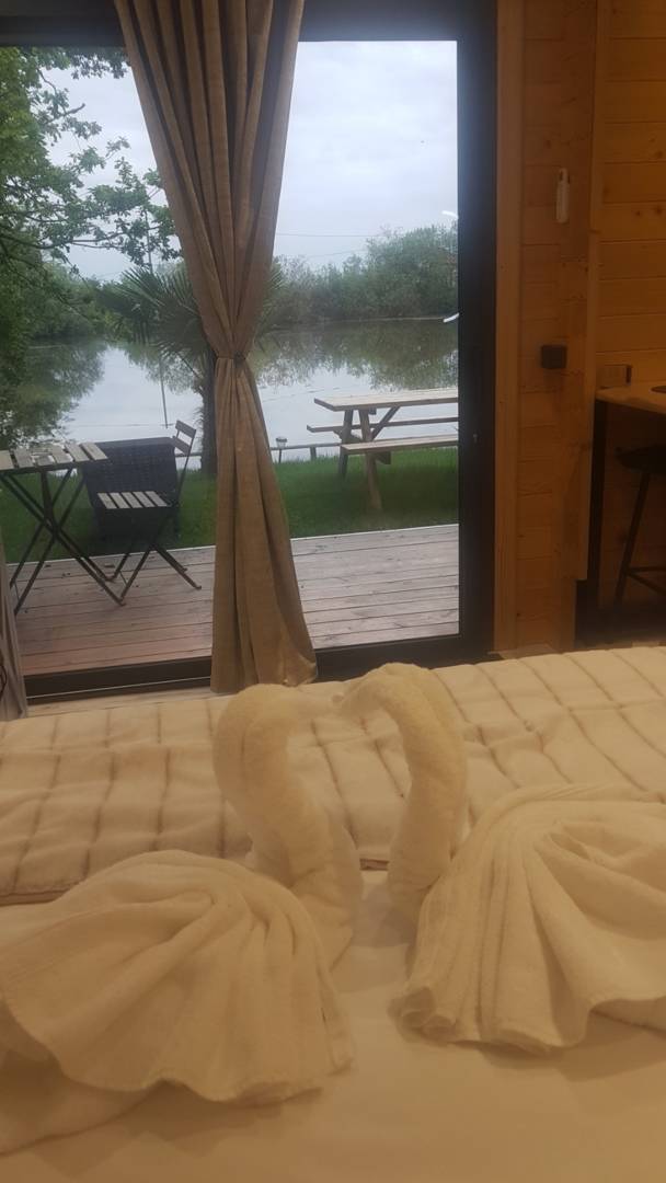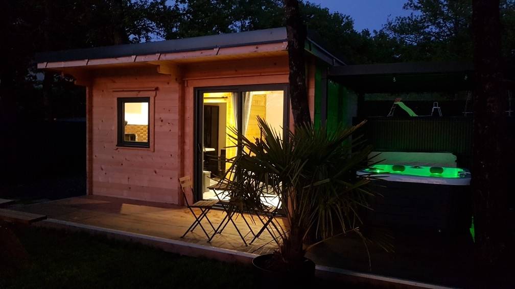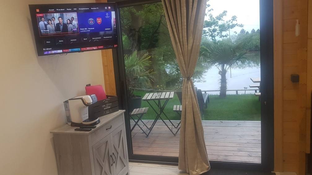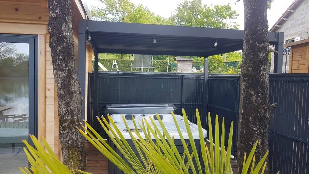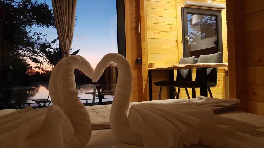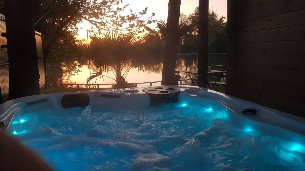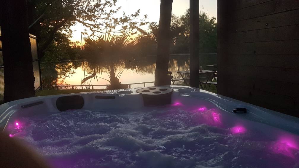 Vous pourrez profiter d’un spa privatif avec vue sur l’étang et son joli coucher de soleil.
