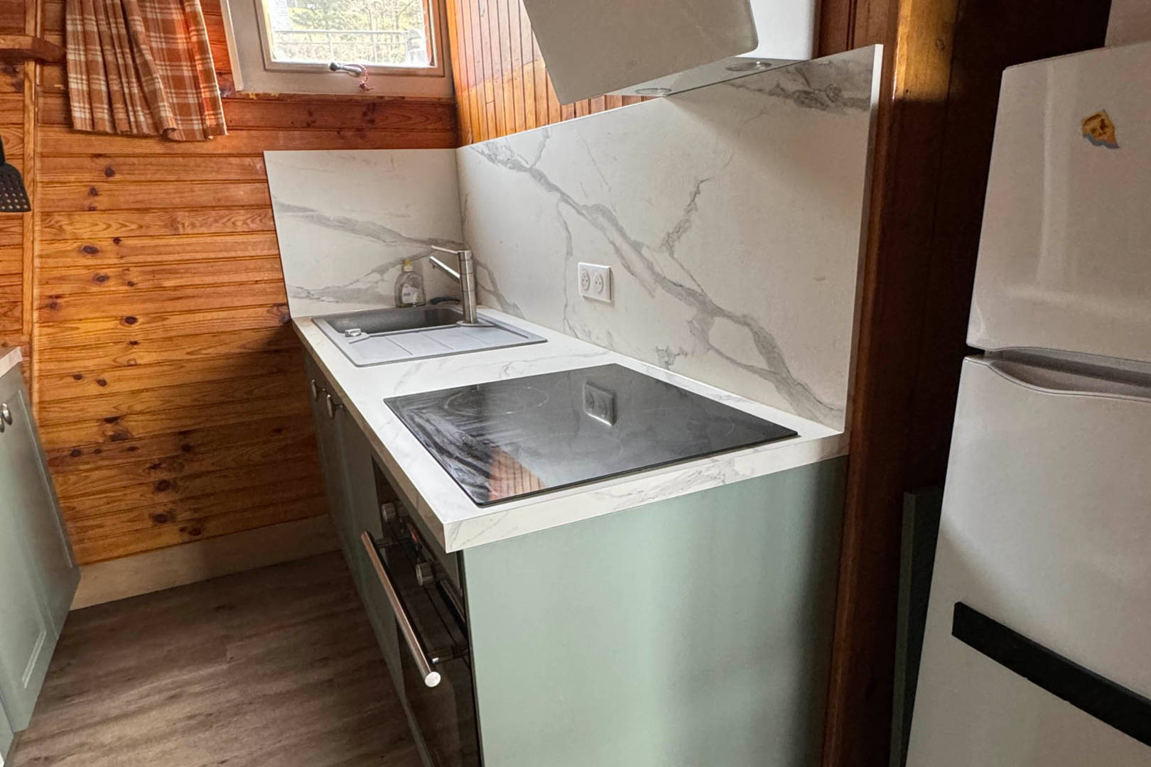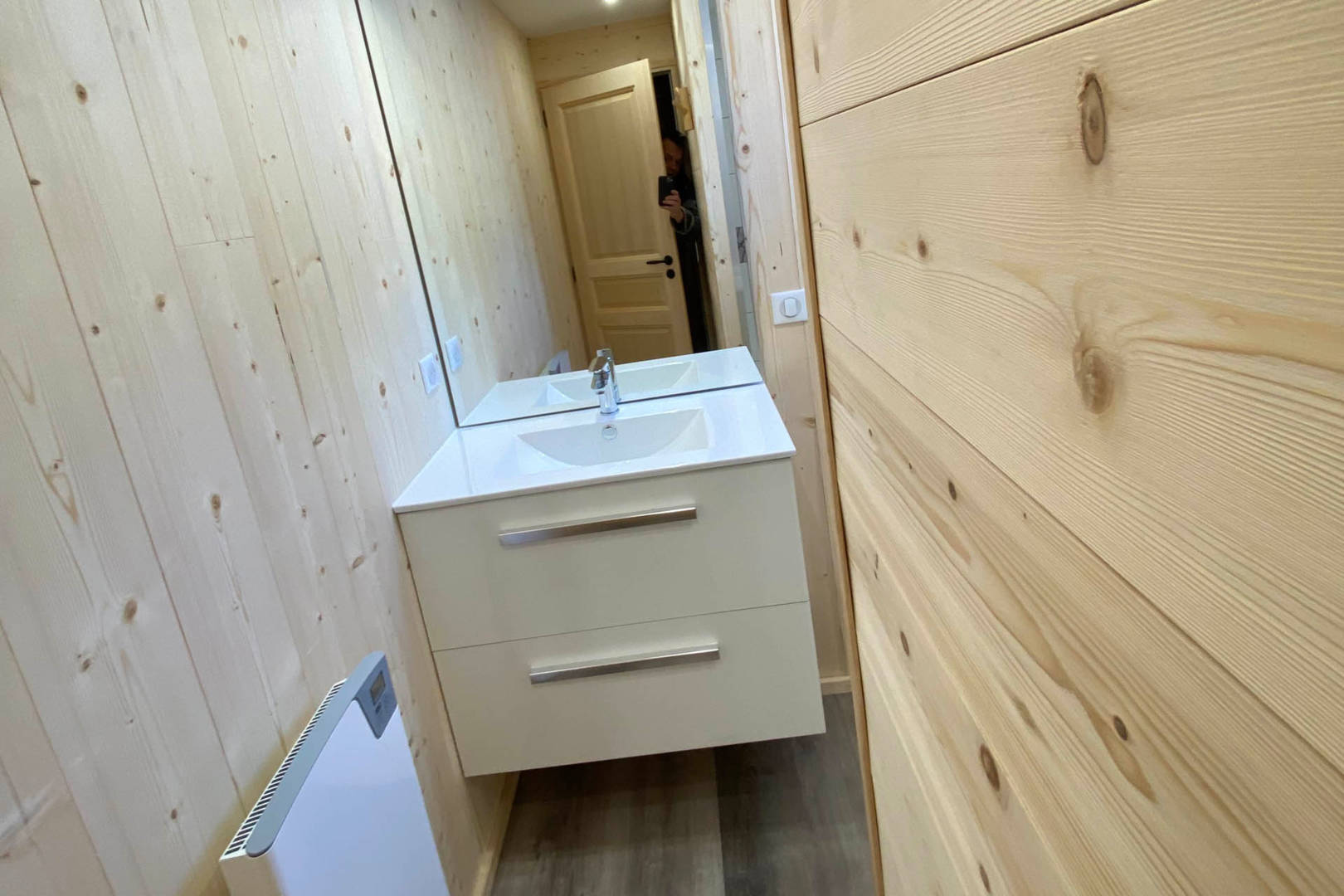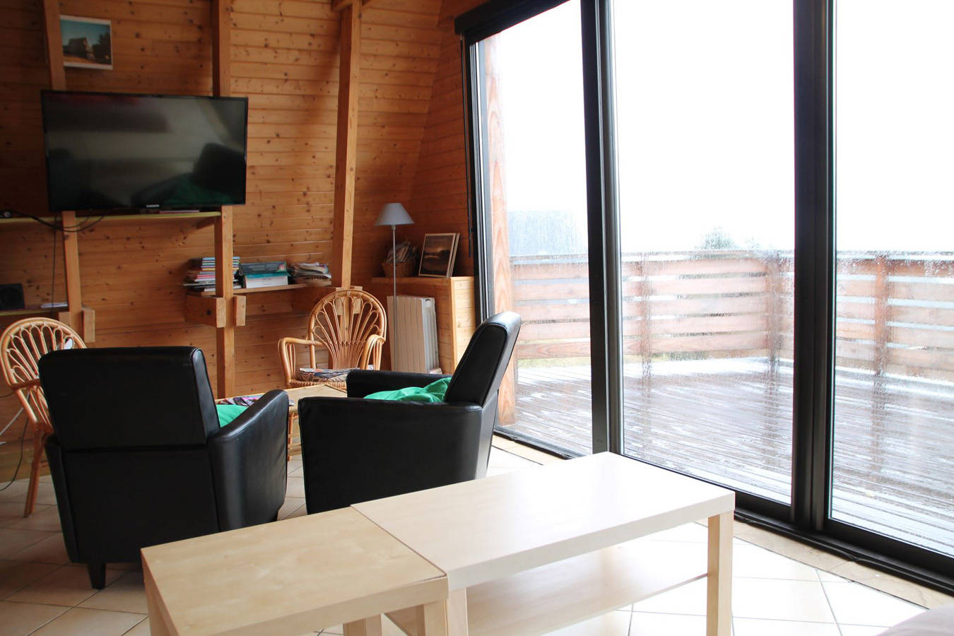 Il dispose d’une grande pièce à vivre très conviviale avec un poêle à bois et d’une grande baie vitrée s’ouvrant sur le balcon , d’une cuisine aménagée(…)