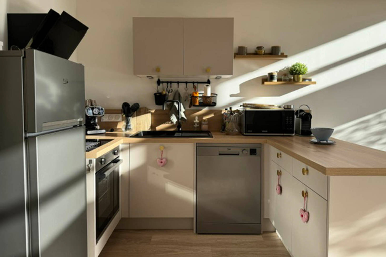 Une cuisine ouverte entièrement équipée+ coin repas viennent compléter la pièce de vie.